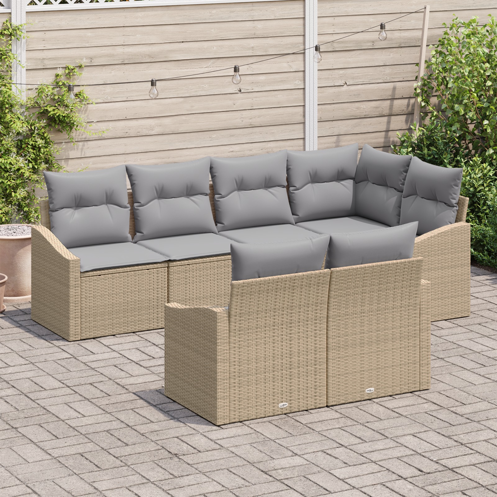 Set de masă pentru grădină cu pernă 7 pcs Beige și gri deschis