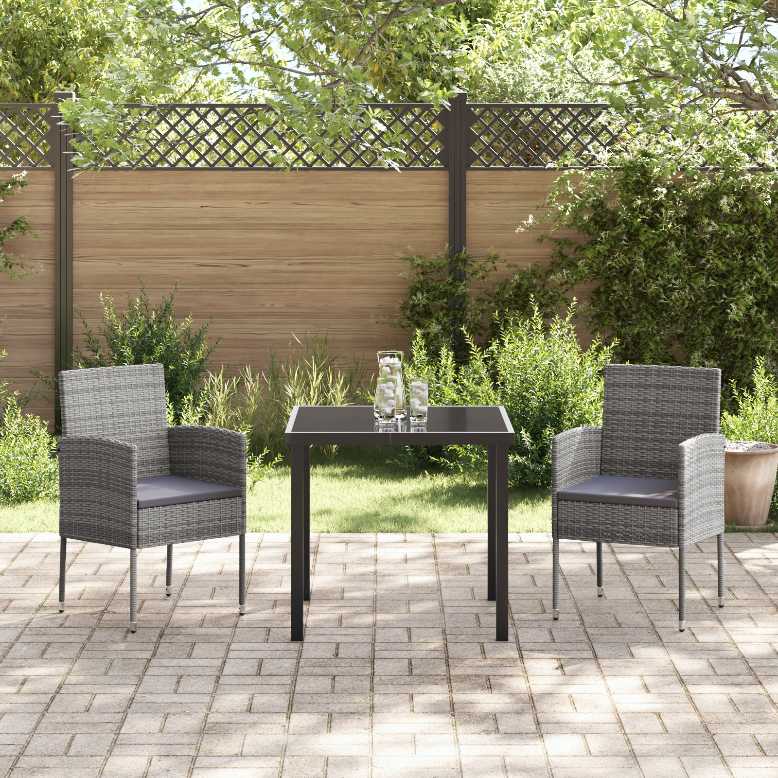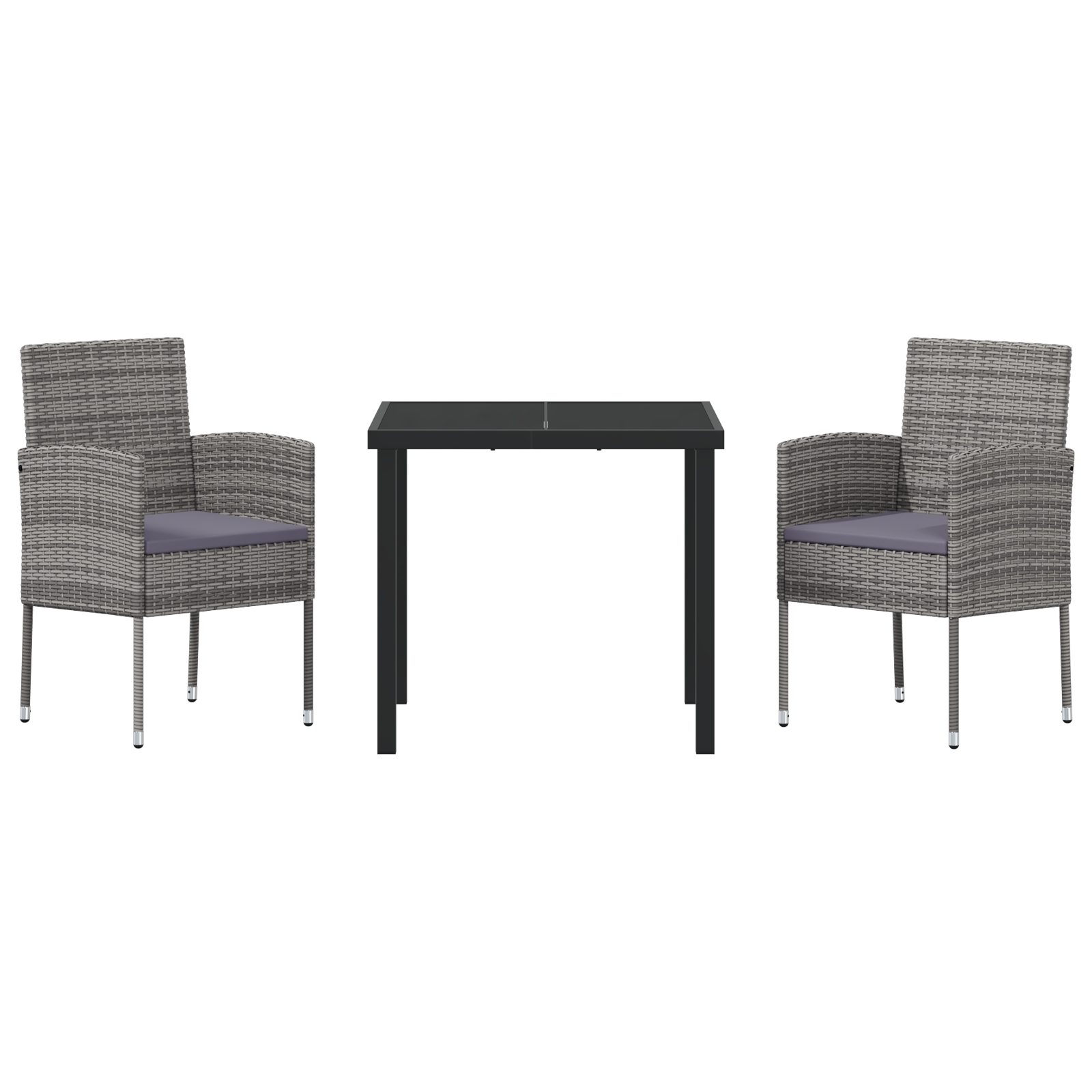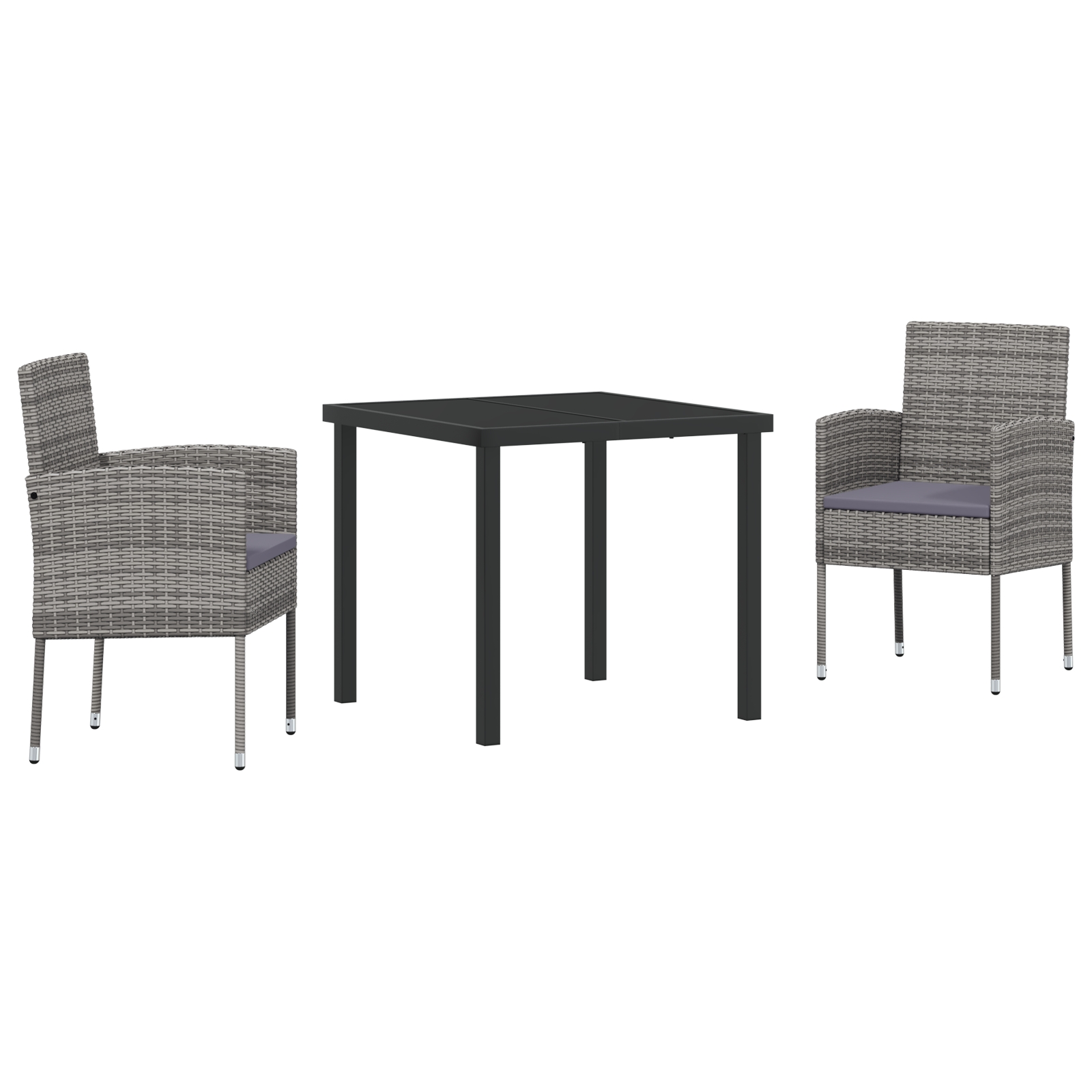 Set de masă pentru grădină cu pernă 3 pcs Gri Rattan poli