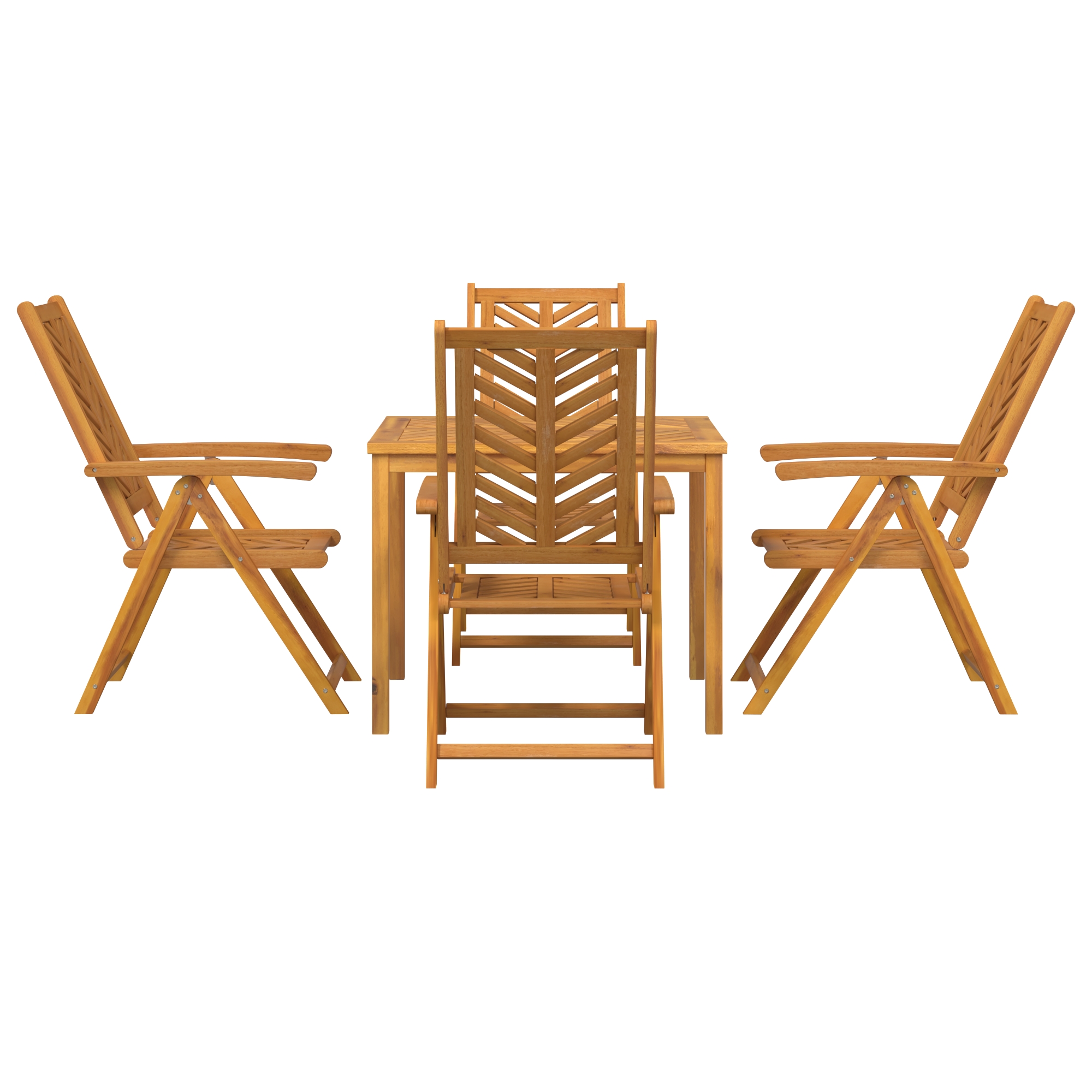 • Meșteșug Excepțional: Fabricat din lemn masiv de acacia, setul ăsta e făcut să dureze, asigurând că masa ta în aer liber e atât stilată, cât și rezistentă.