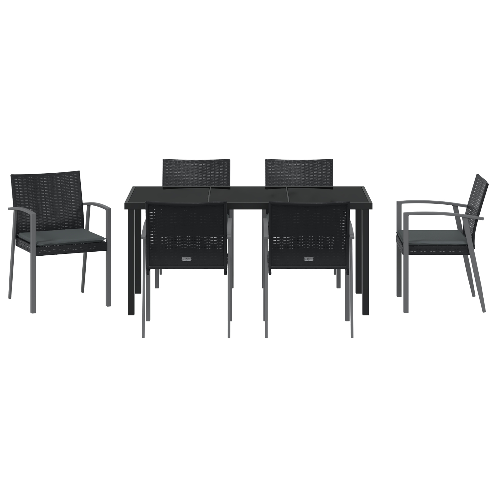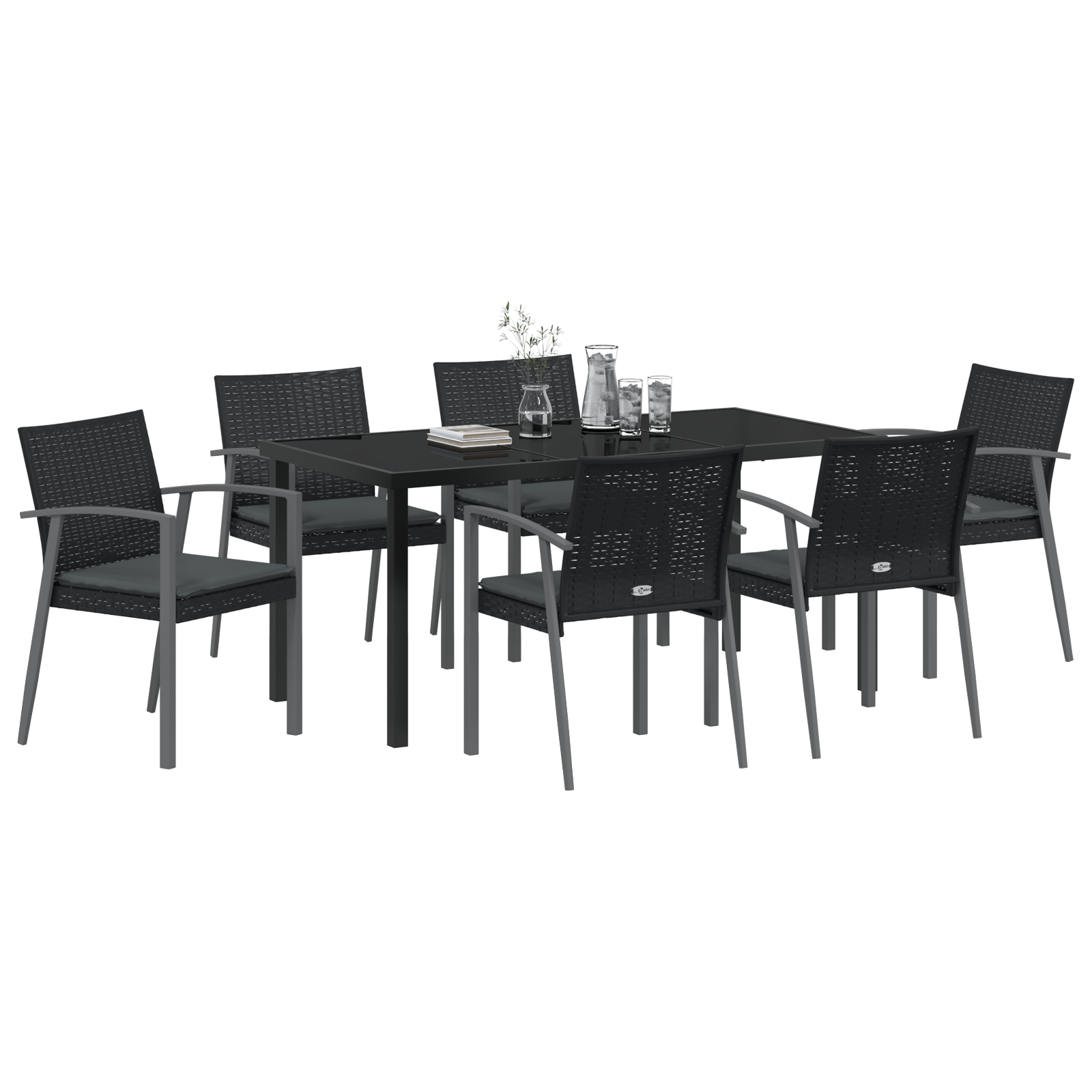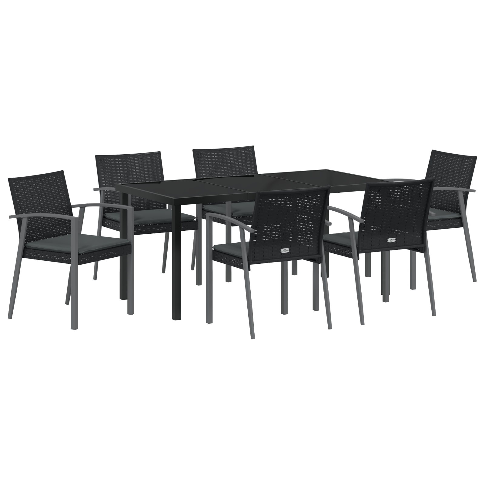 Set de masă pentru grădină 7 pcs Negru Rattan poli
