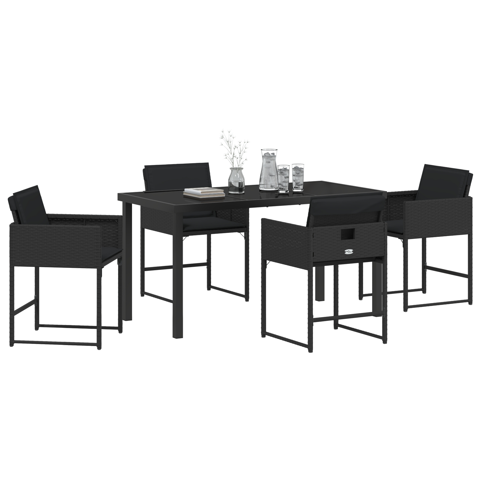 Set de masă pentru grădină cu pernă 5 pcs Negru Rattan poli