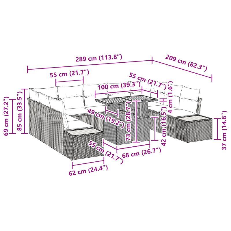 Set de masă pentru grădină 10 pcs Bej și gri 100 x 55 x 73 cm