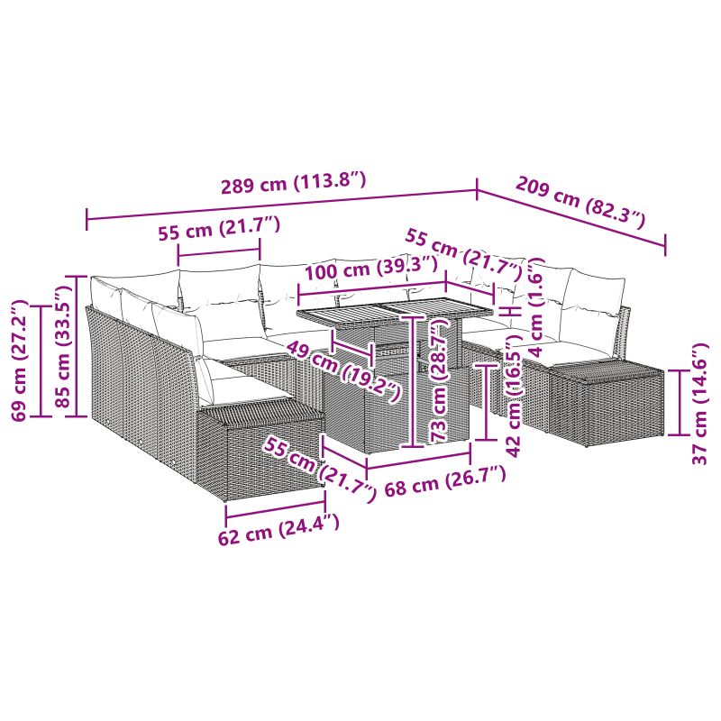 - Set All-in-One Acesta include tot ce ai nevoie—canapele laterale și colțare cu depozitare, scaune centrale și o masă de grădină. O să fie super util să ții totul organizat.