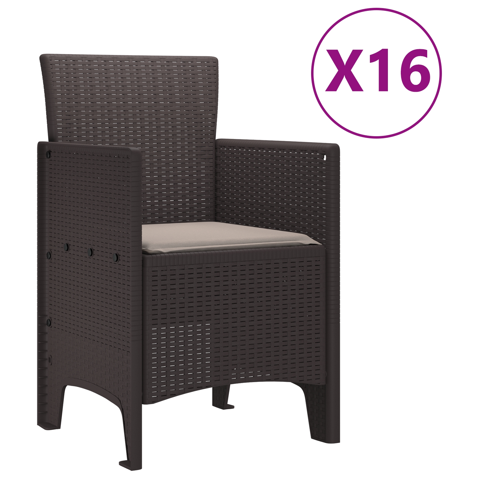 • Elemente de Confort: Spătarul și cotierele îmbrăcate în poliratan oferă confort optim și suport ergonomic pentru ședere prelungită. Includerea pernelor de șezut din spumă completate cu închidere cu fermoar asigură o îndepărtare simplă pentru curățare, îmbunătățind experiența generală a utilizatorului și confortul.