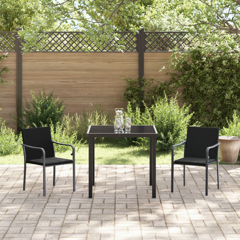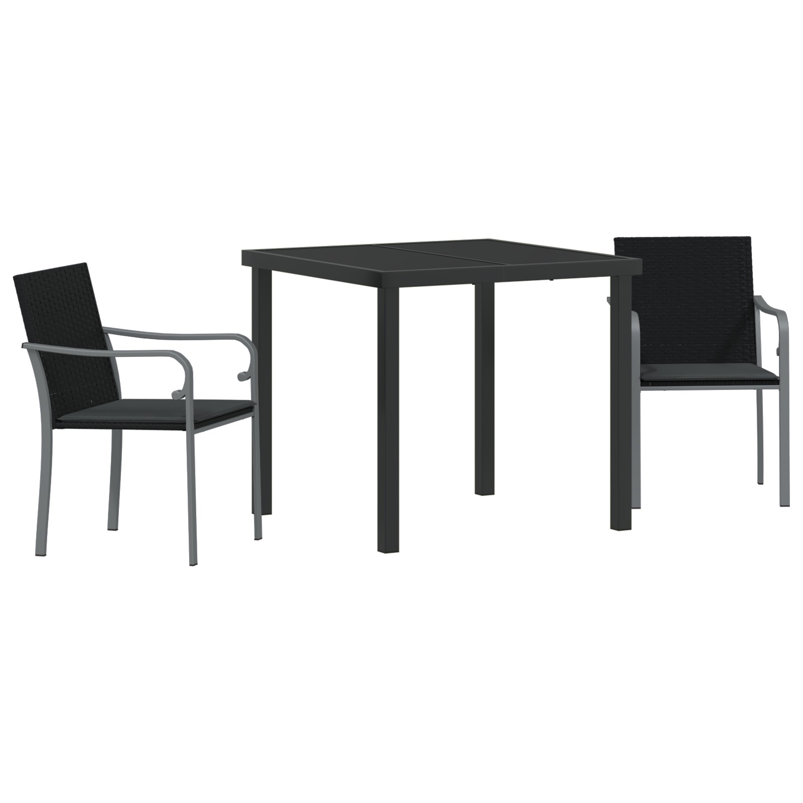 Set de masă pentru grădină 3 pcs Negru Rattan poli