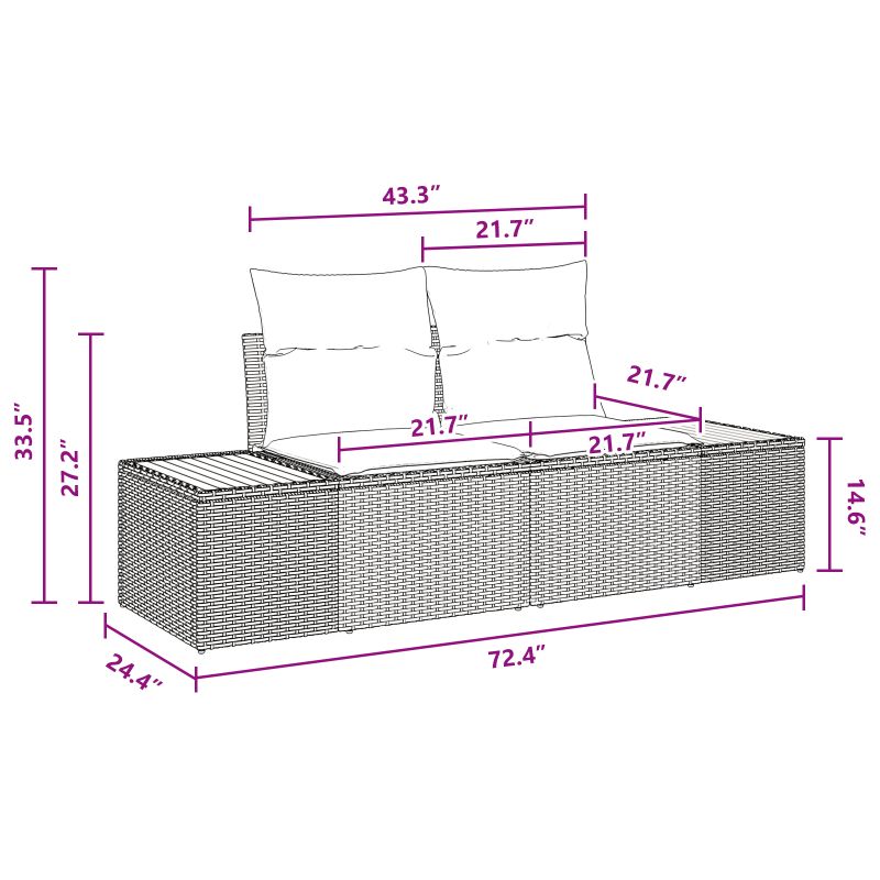 • Caracteristici / Funcție / Design: Designul modular al setului permite configurații personalizabile, adaptându-se la diverse forme și dimensiuni ale patio-ului. Picioarele reglabile ajută la nivelarea mobilierului pe suprafețe denivelate, menținând totodată stabilitatea. Cu pernele de șezut detașabile și cu fermoar, curățarea și întreținerea devin fără efort.