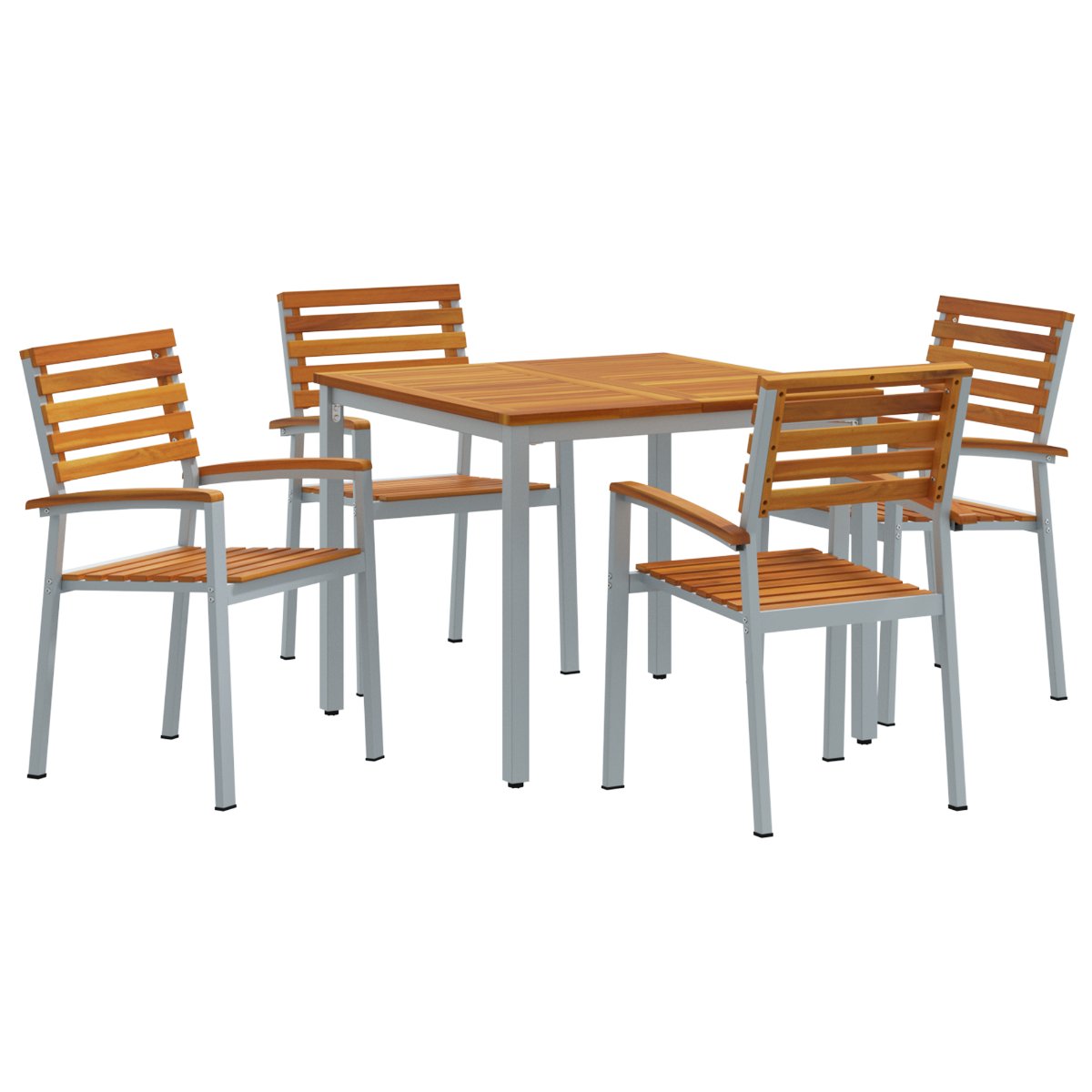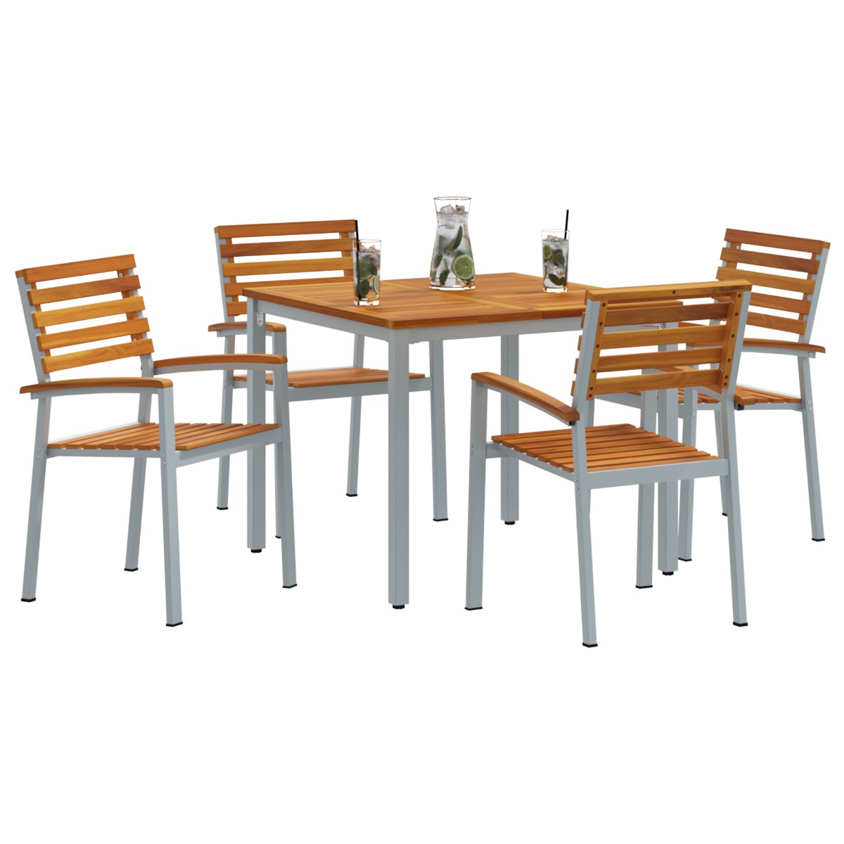 Setul ăsta modern de mese pentru grădină îmbină perfect simplitatea cu funcționalitatea, având linii clare și un look elegant. E ideal pentru viața de afară, fie că organizezi o petrecere în grădină, fie că te bucuri de o masă relaxată pe terasă cu prietenii și familia. Combinarea de oțel și lemn de acacia solid îi dă o vibrație trendy și primitoare, creând un spațiu cald și stylish.
