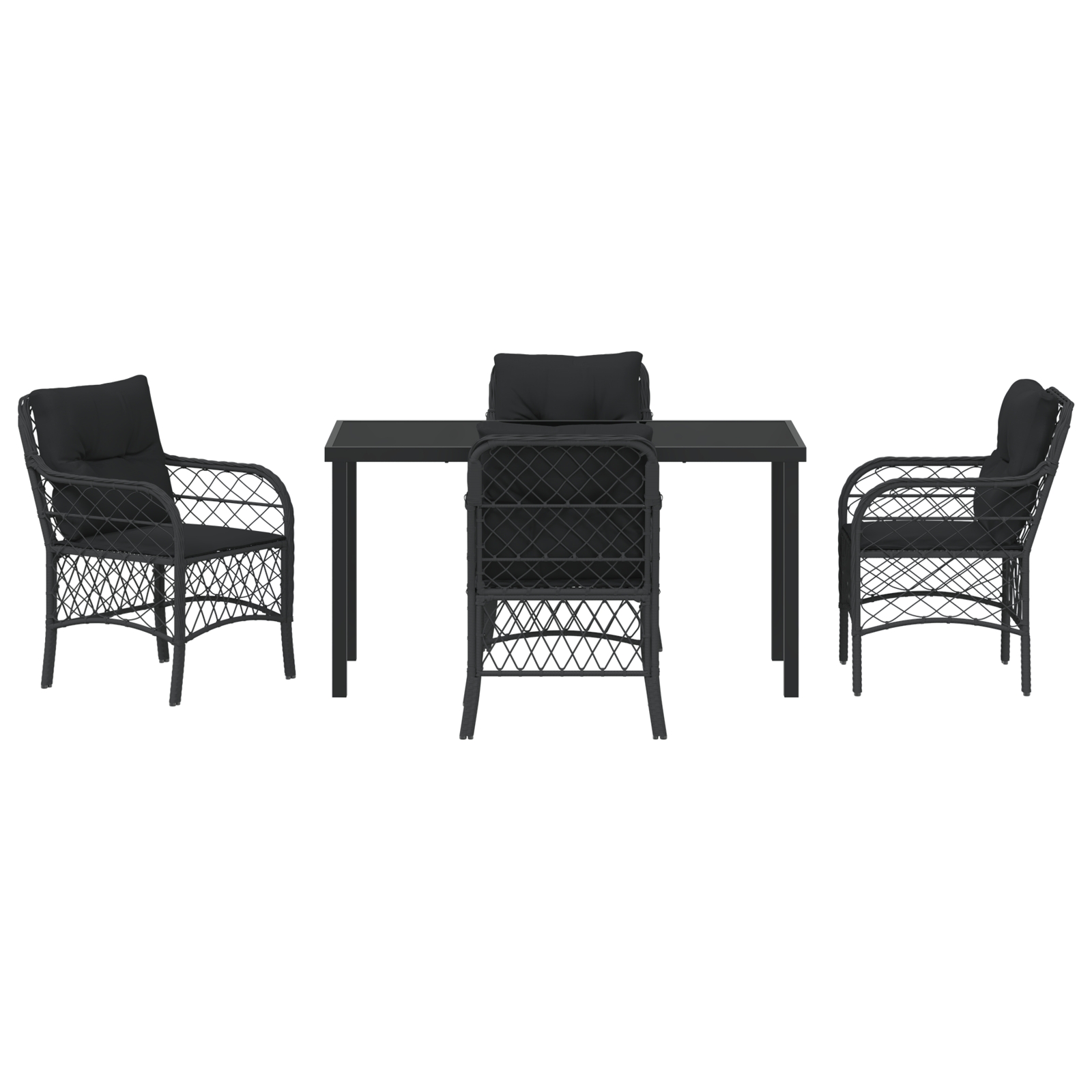- 4 x scaune de grădină, 1 x masă de grădină, 4 x perne pentru șezut, 4 x perne pentru spate