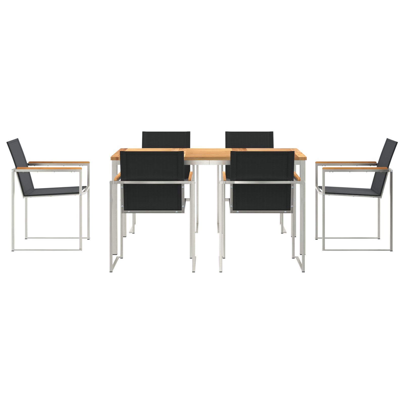 - Materiale: Setul de dining pentru grădină îmbină un cadru solid din oțel cu o masă din lemn, oferindu-ți atât durabilitate, cât și un look natural. Oțelul inoxidabil e tare de încredere și rezistă la vremea rea, așa că e o alegere smart pentru grădina ta.