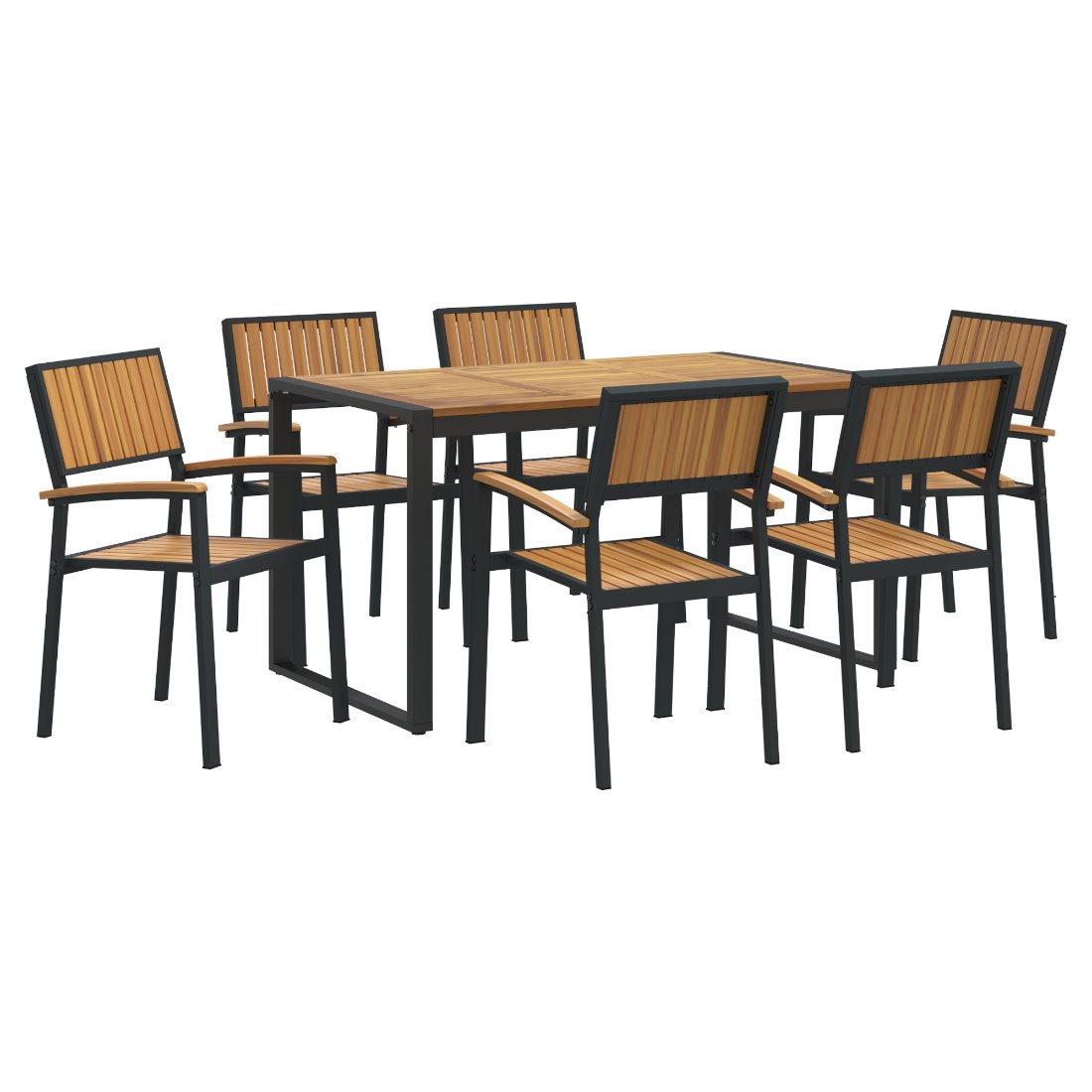 - Componente: Setul include brațe din lemn de acacia masiv, care adaugă căldură și stil. Picioarele solide din oțel oferă suport bun, asigurându-te că ești în siguranță și confortabil cât stai. Finisajul bogat de culoare maro leagă totul, dând un aspect plăcut care se potrivește bine cu orice decor de exterior.