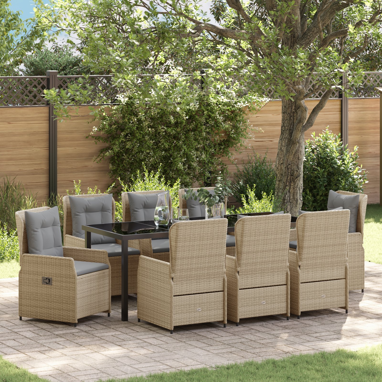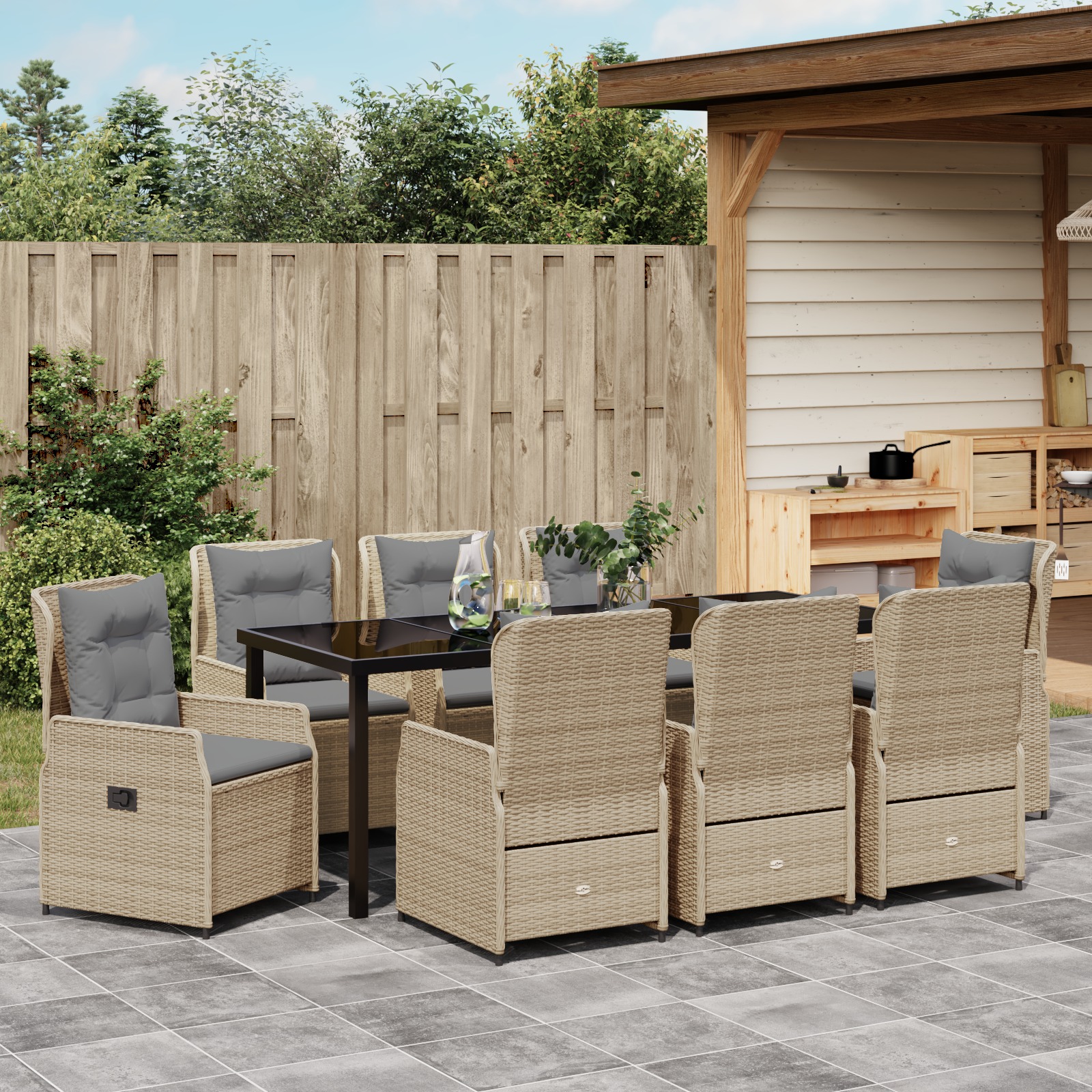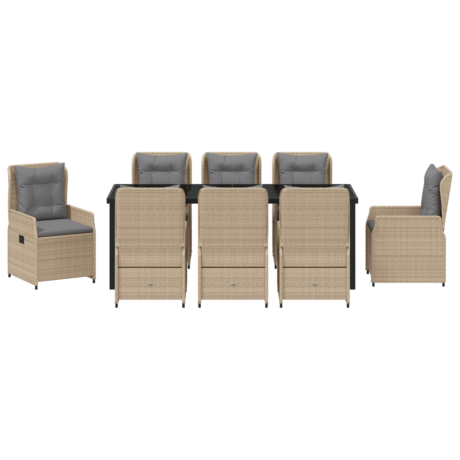 Set de masă pentru grădină 9 piese din ratan poli bej