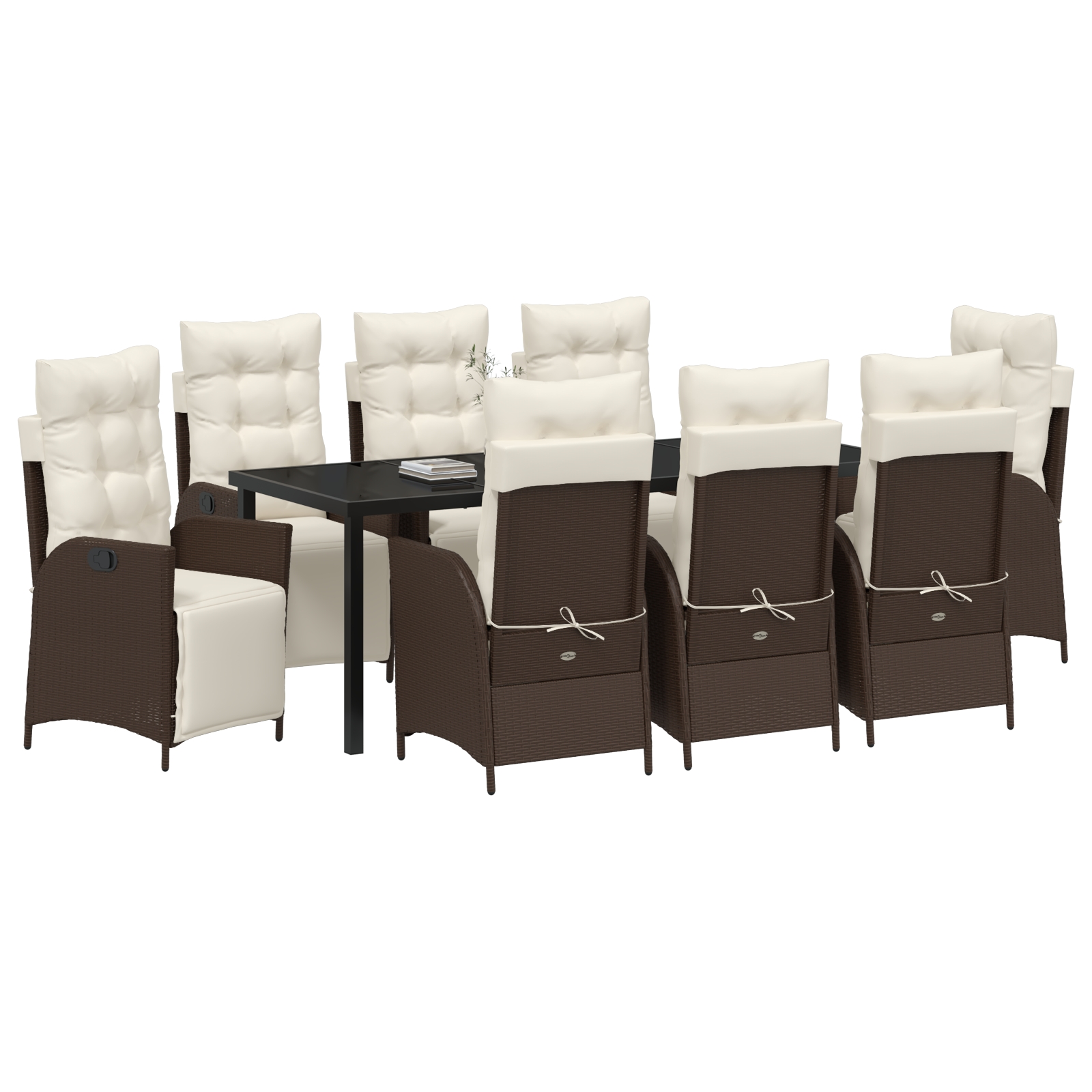 Set de Masă pentru Grădină 9 Piese Ratan Polimeric Maro