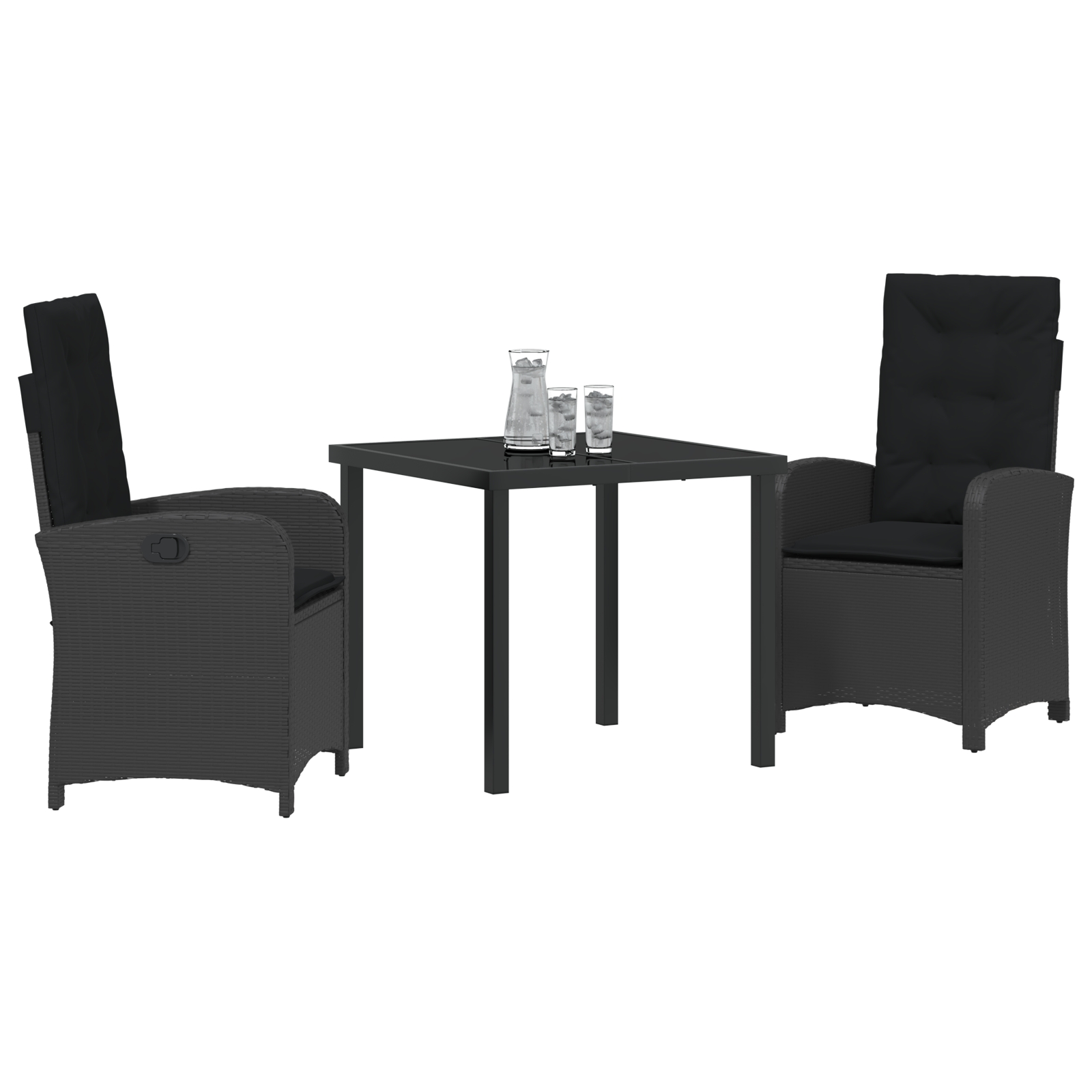 Set de masă pentru grădină 3 pcs Negru poliratan