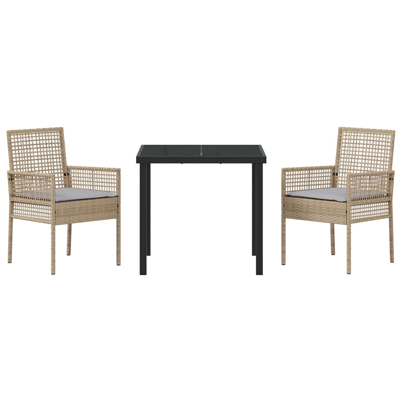 Set de masă pentru grădină cu pernă 3 pcs Bej Rattan poli
