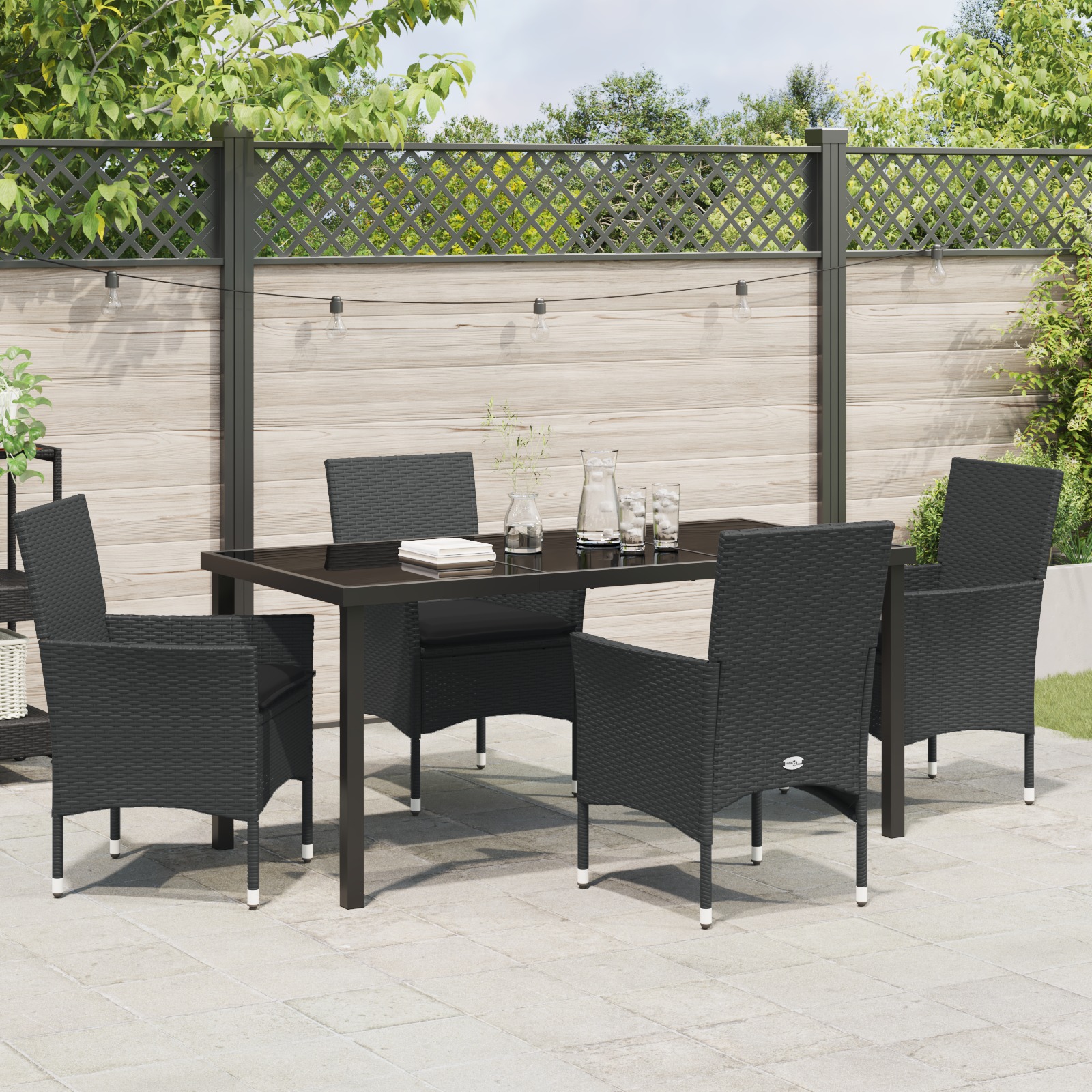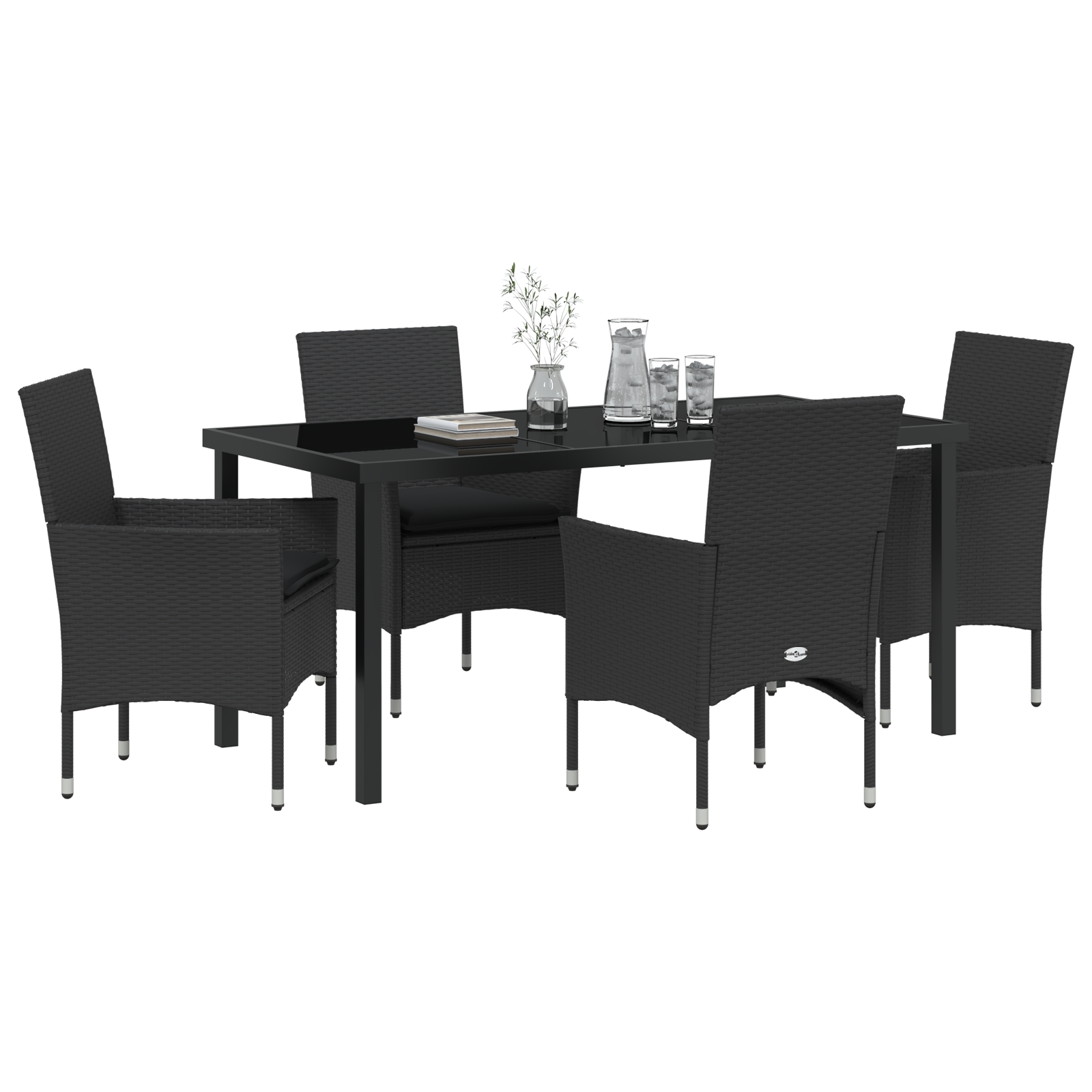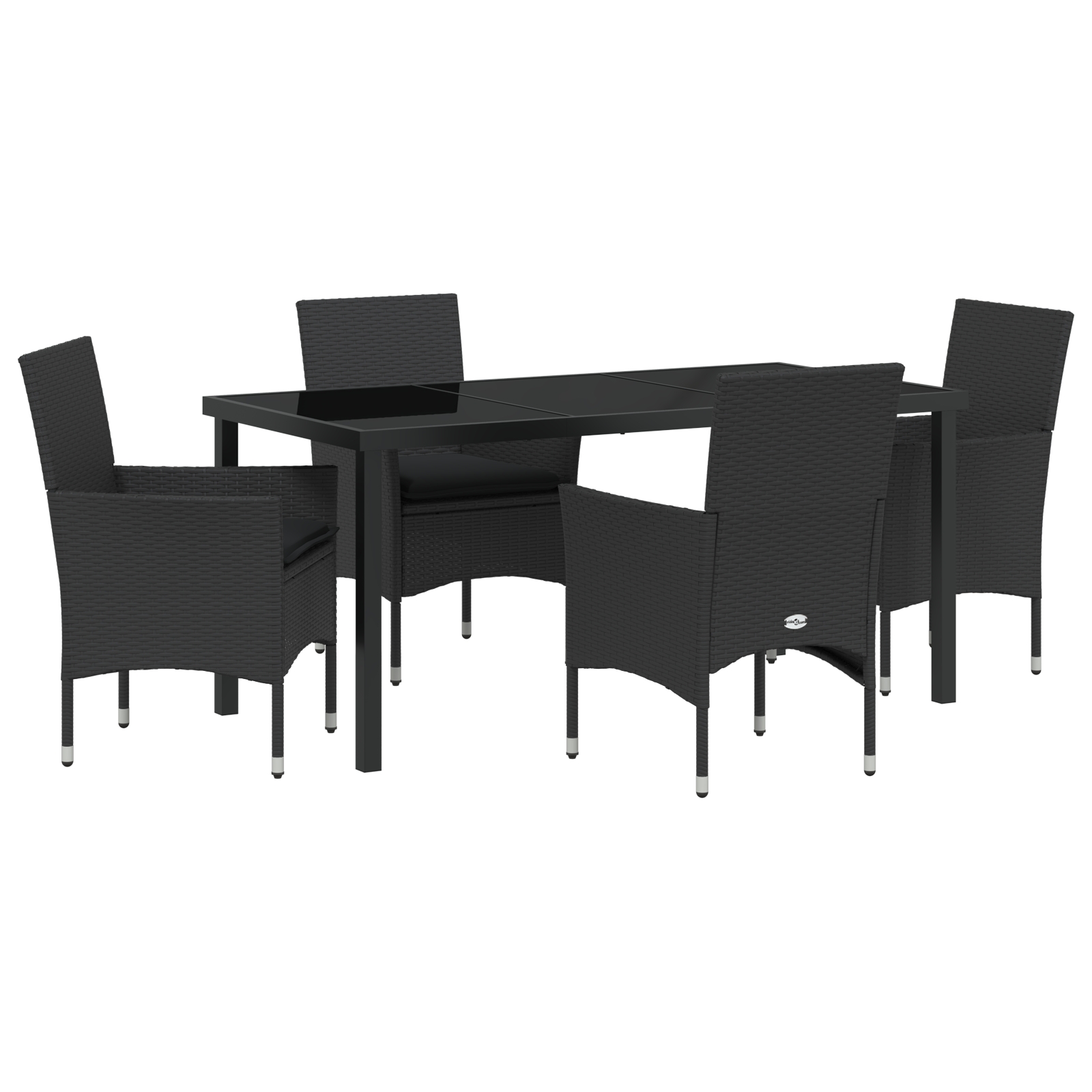 Set de masă pentru grădină cu pernă 5 pcs Negru Rattan poli