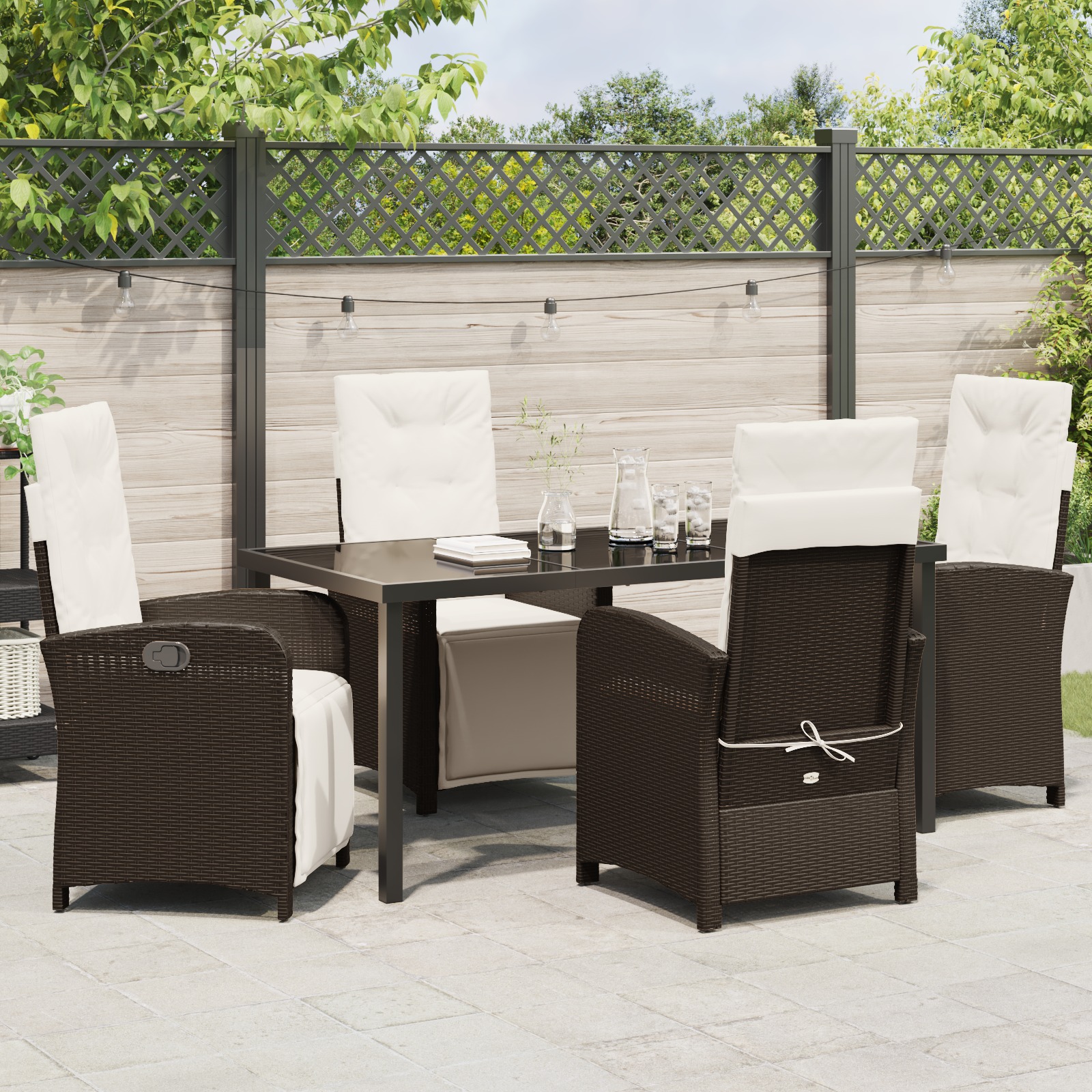 - Utilizări Versatile: Acest set e făcut pentru viața afară, transformând grădina sau terasa ta într-un spațiu de dining primitor. E ideal de la brunch-uri relaxate la cine sofisticate sub stele.