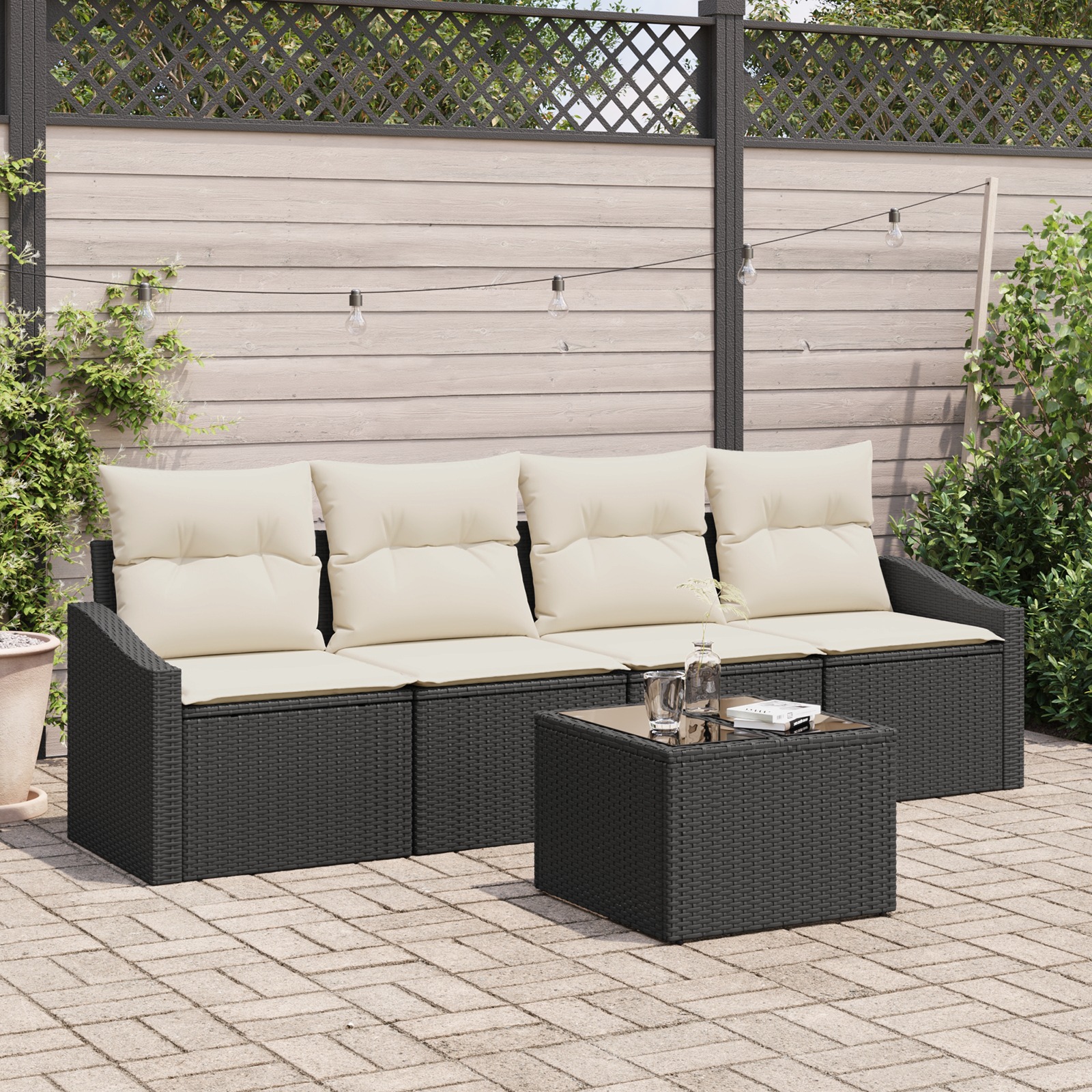 Set de canapele pentru grădină cu pernă 5 pcs Negru și Crem