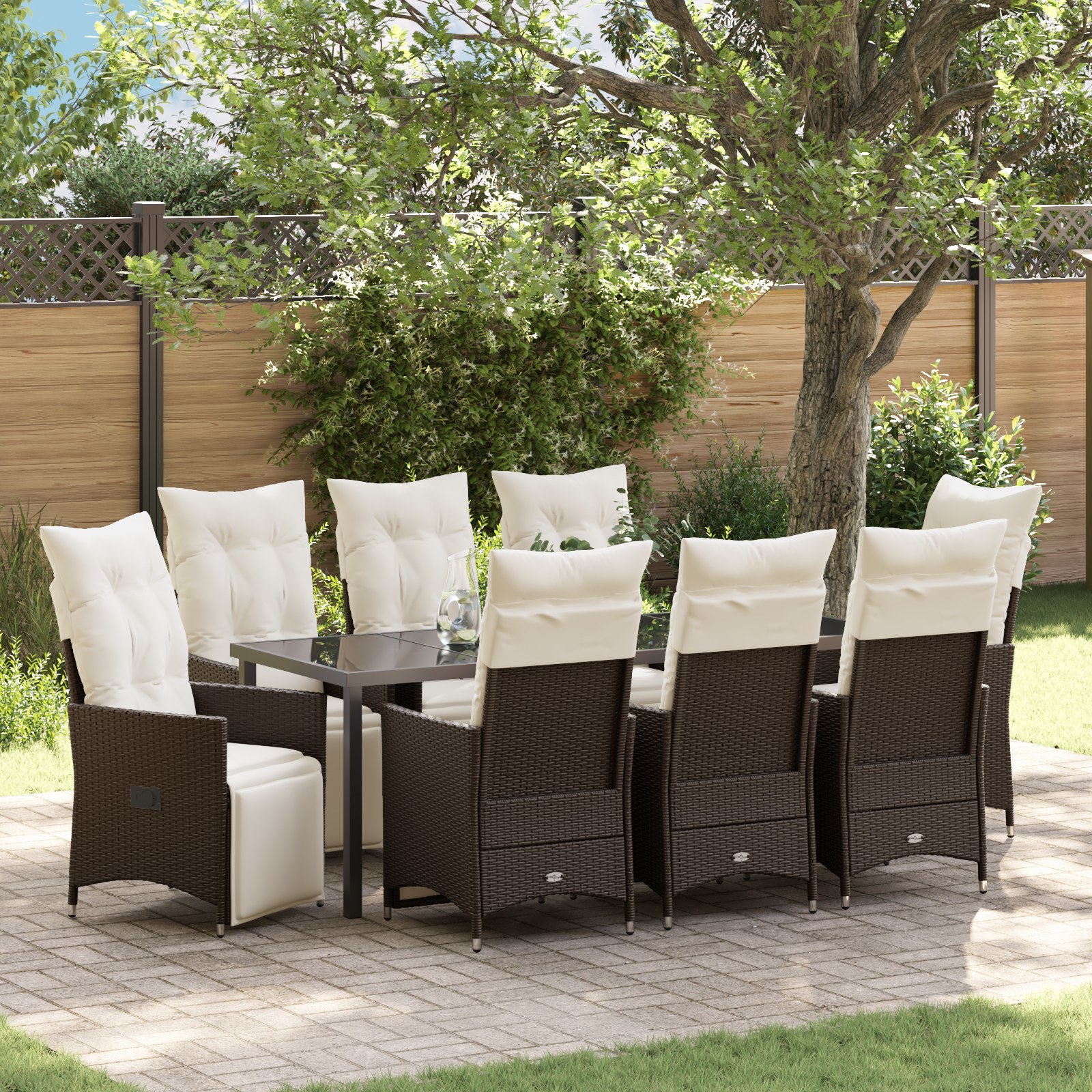 Set de masă pentru grădină cu 9 piese și perne, Rattan poli maro