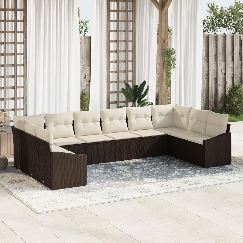 Set de masă pentru grădină cu pernă 10 pcs Maro și Crem