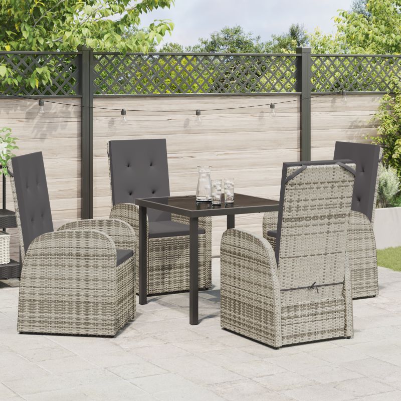 Set de masă pentru grădină cu pernă 5 pcs Gri poliratan