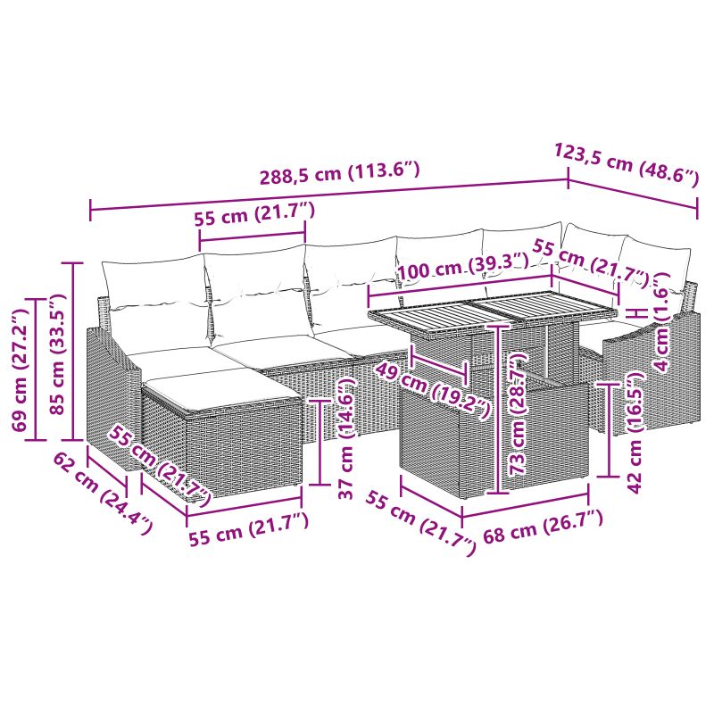 - Componente Funcționale: Echipat cu componente modulare, inclusiv locuri cu funcții de depozitare și o masă confecționată din lemn masiv de acacia, acest set de masă oferă practicitate fără a compromite stilul. Cotieriele din poliratan și spatele finisat oferă suport și confort ergonomic, iar pernele de spumă incluse oferă un confort prietenos, asigurând o experiență plăcută la mesele îndelungate sau la conversațiile amicale.