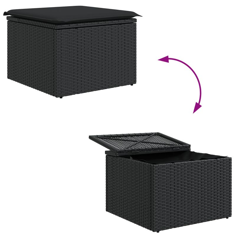 Set de masă pentru grădină cu pernă cu depozitare 6 pcs Negru