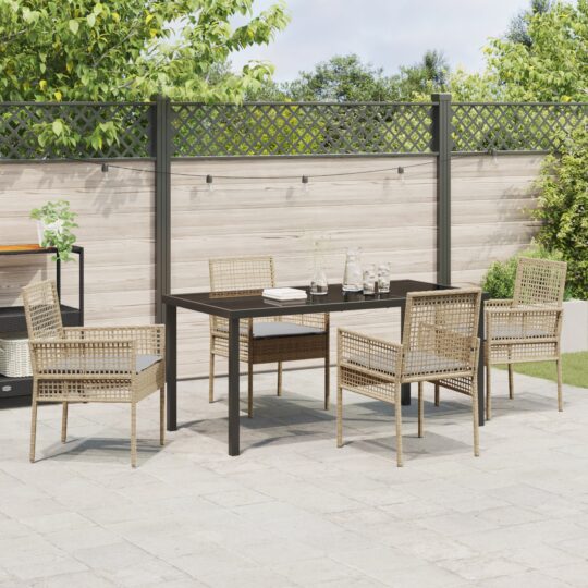 Set de masă pentru grădină cu pernă 5 pcs Bej Rattan poli