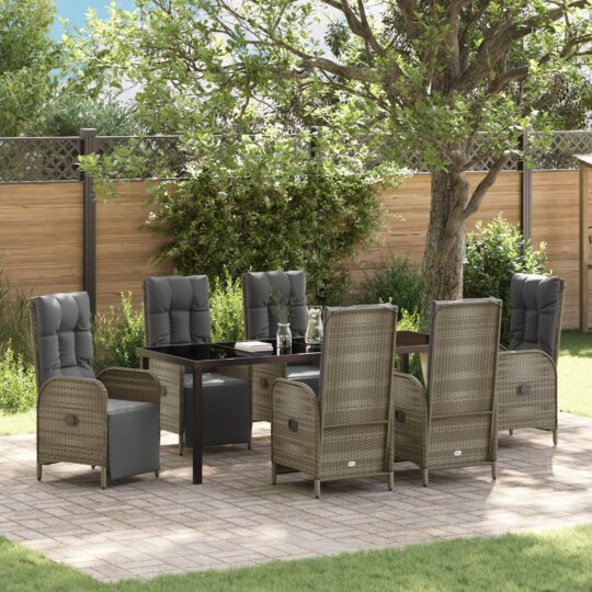 Set de Masă pentru Grădină cu Perne Gri Poliratan