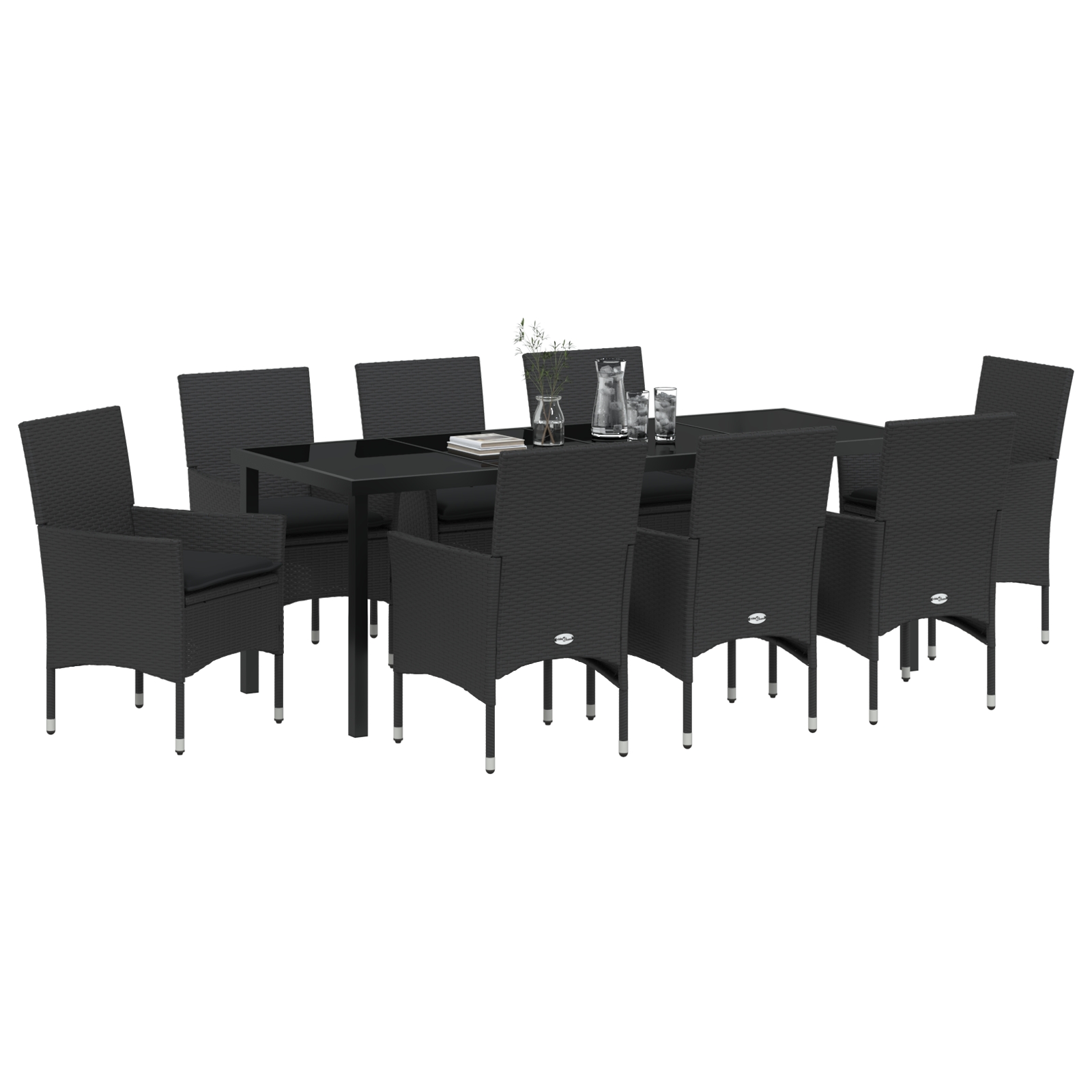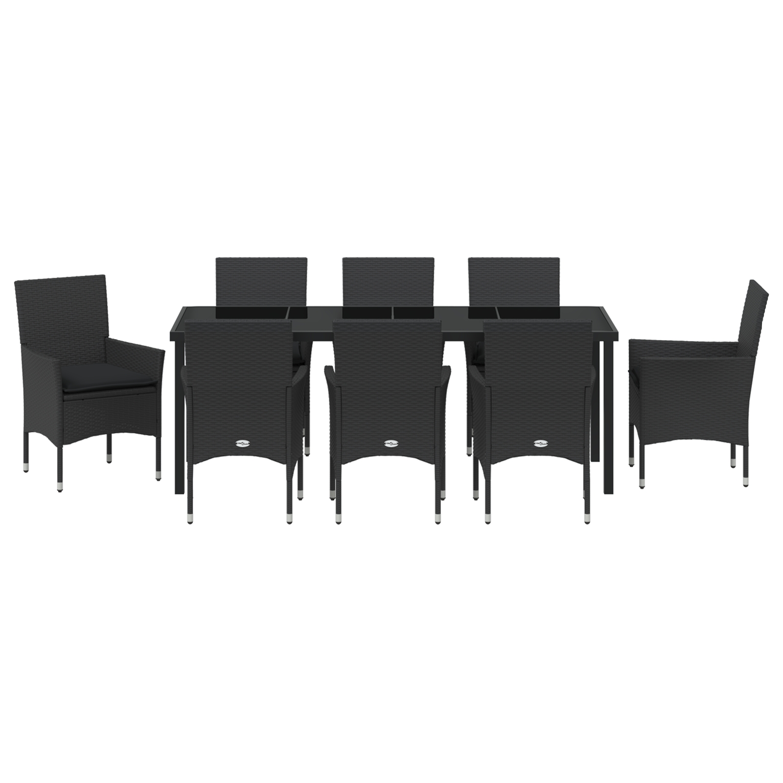 Set de Masă pentru Grădină cu Perne Poliratan Negru