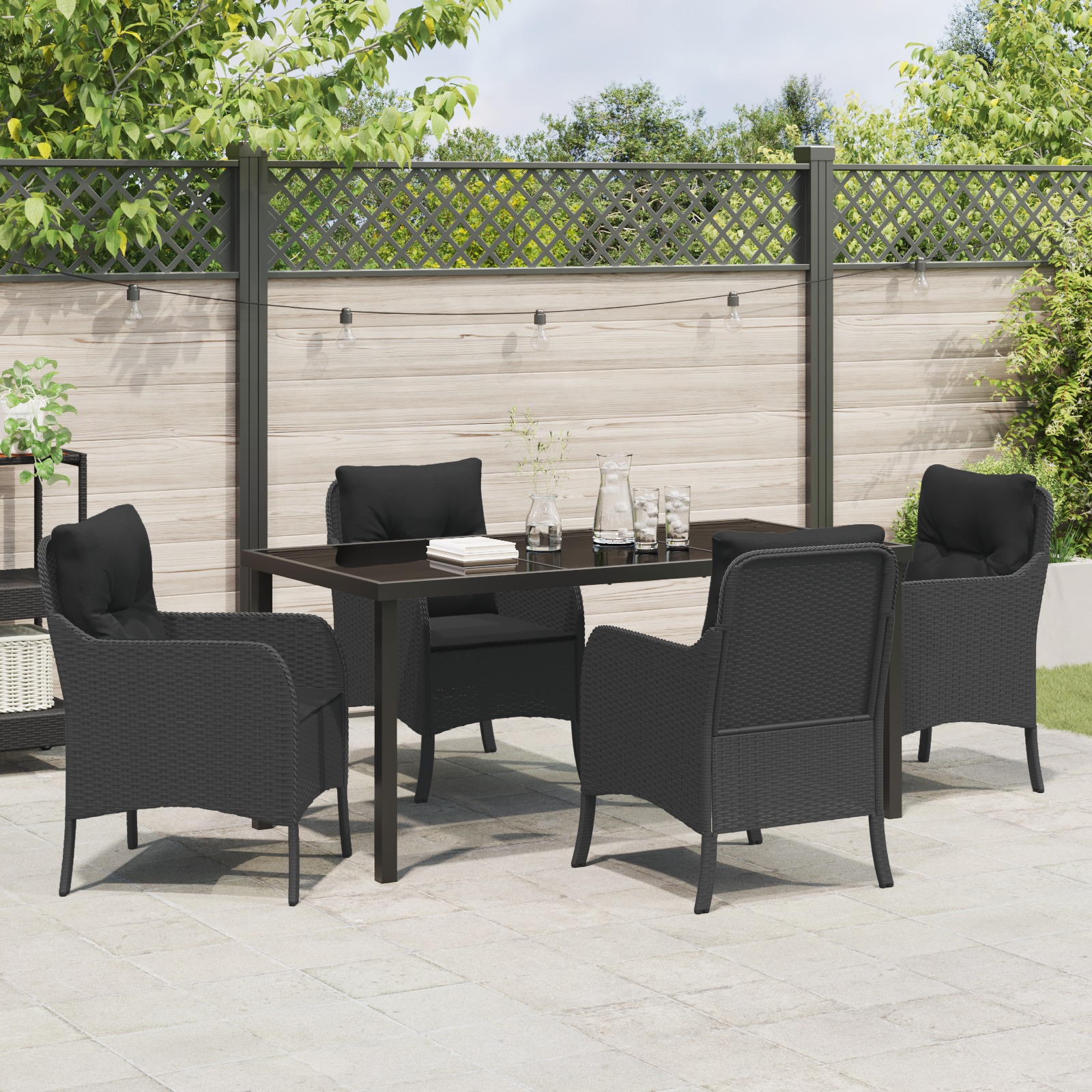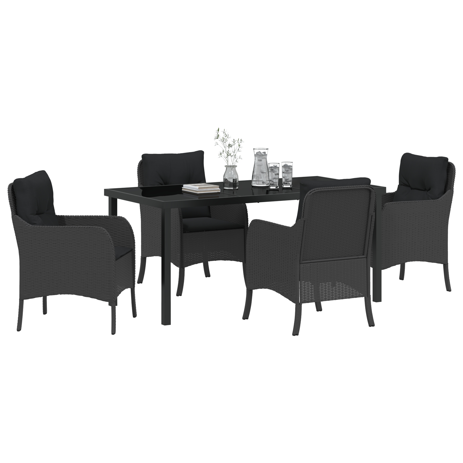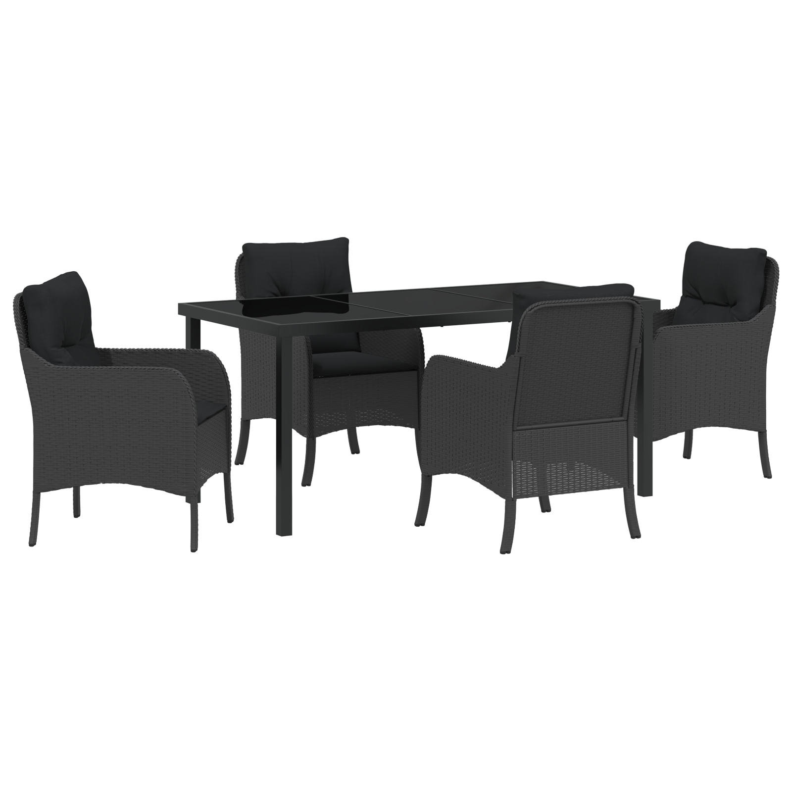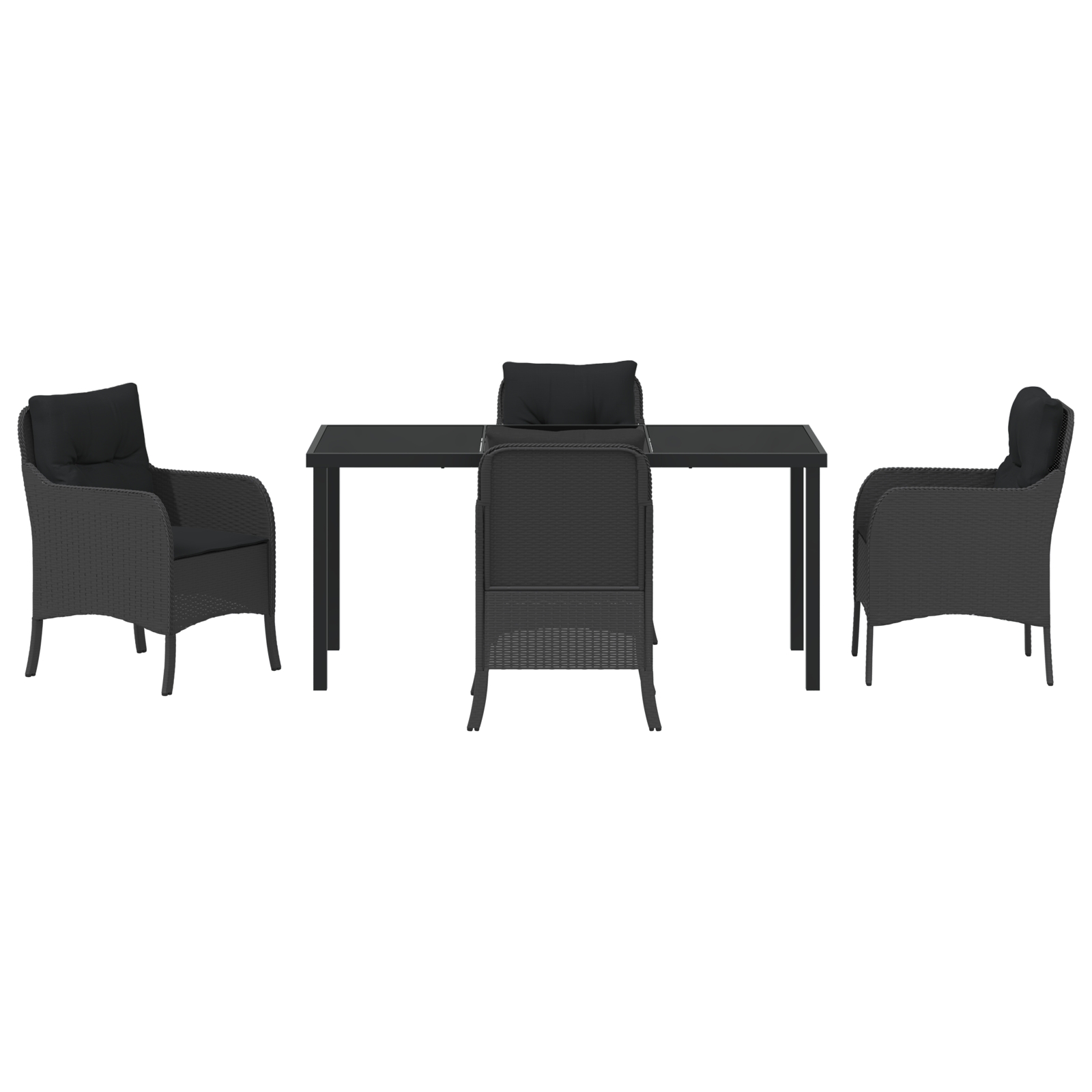 Set de masă pentru grădină cu pernă 5 pcs Negru Rattan poli