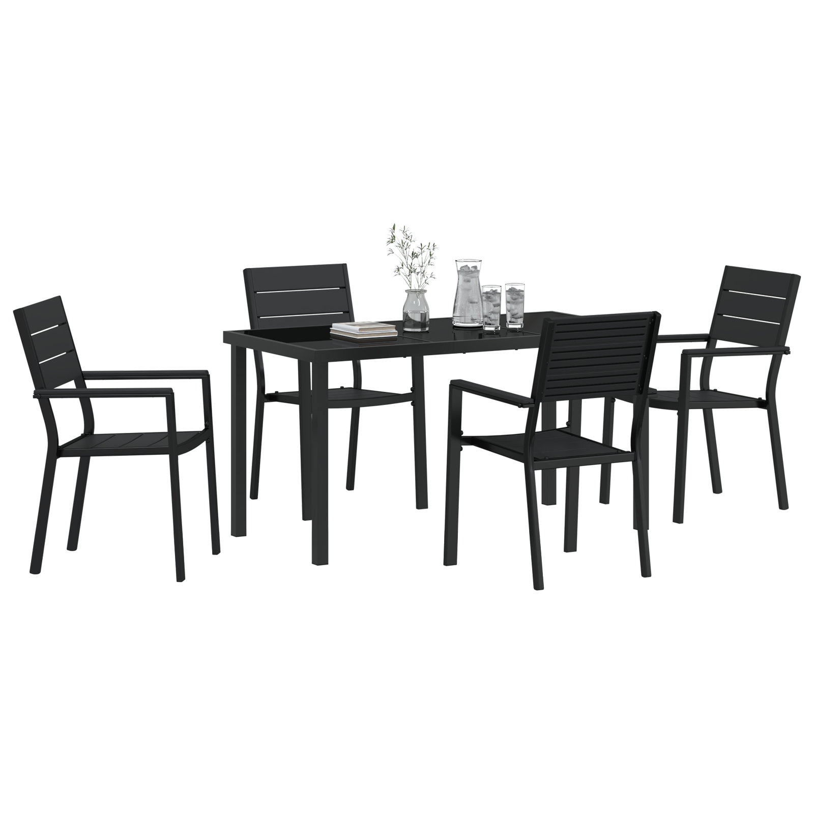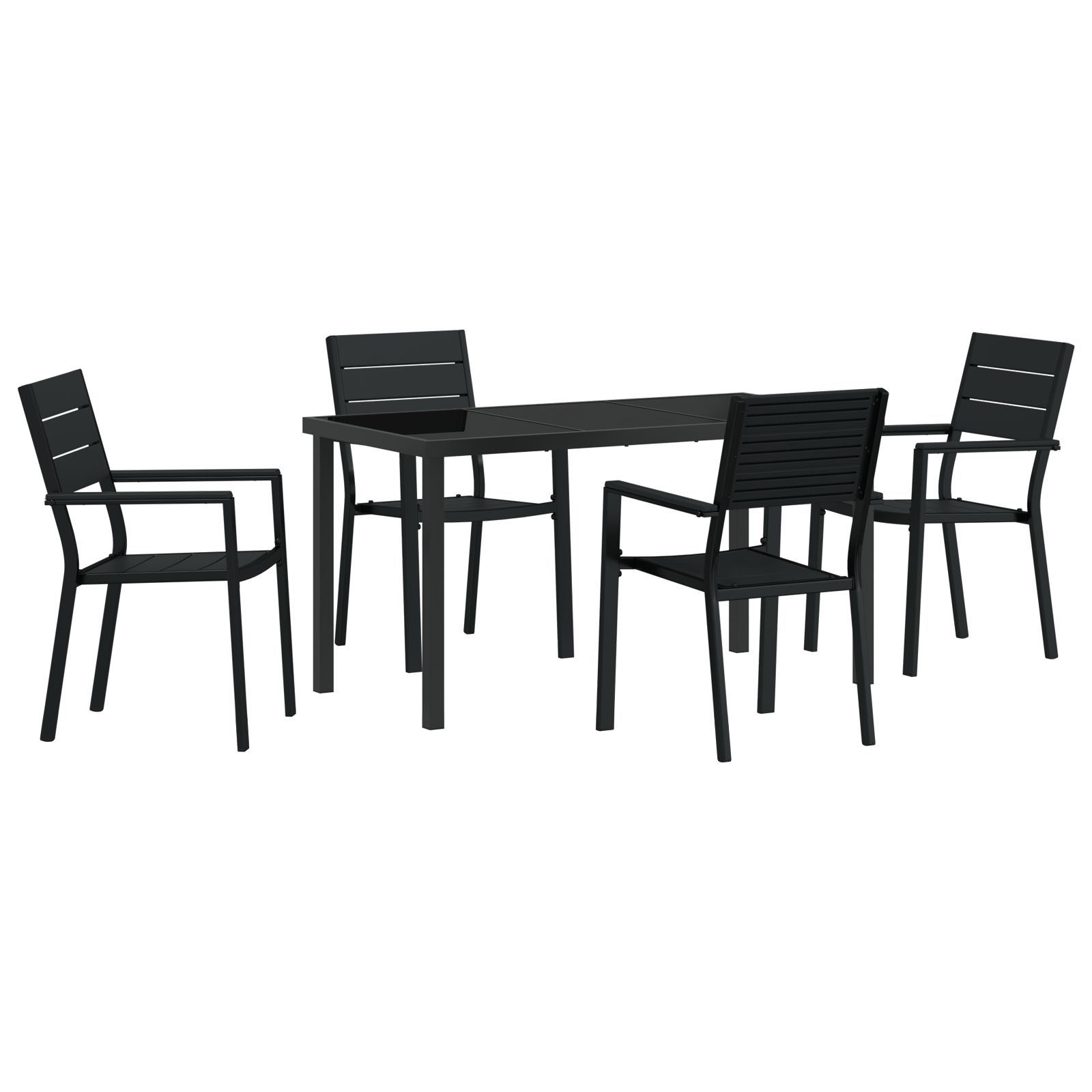 Set de masă pentru grădină 5 pcs Negru HDPE