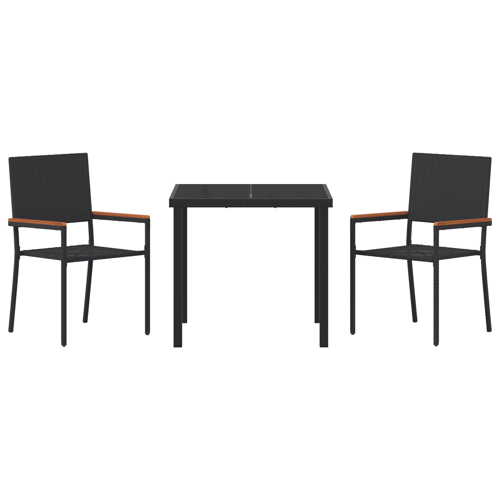 Set de masă pentru grădină 3 pcs Negru Rattan poli