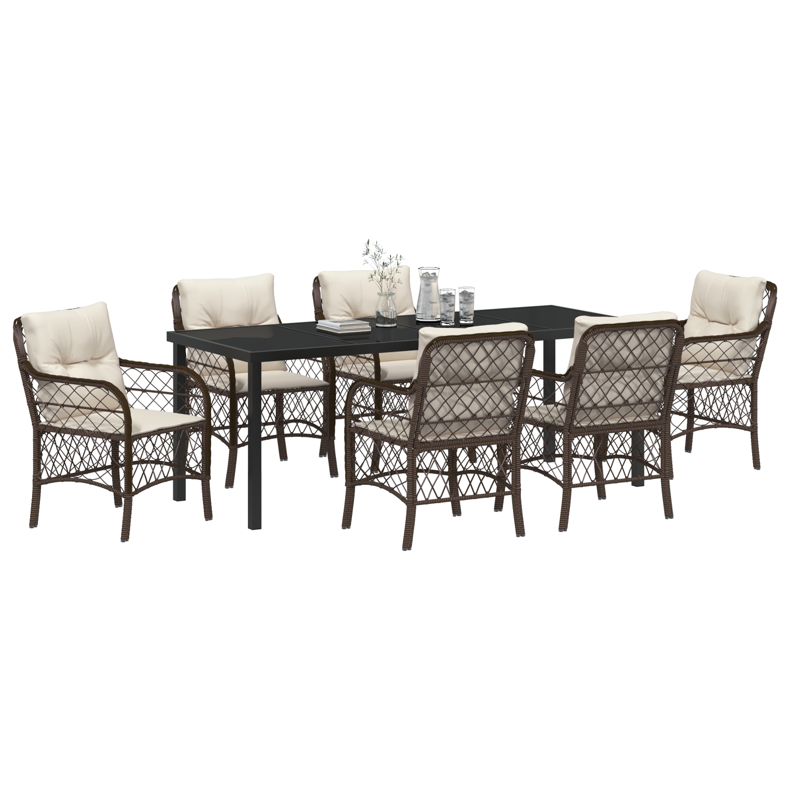 Set de Masă și Scaune de Grădină cu Perne Maro din Poliratan
