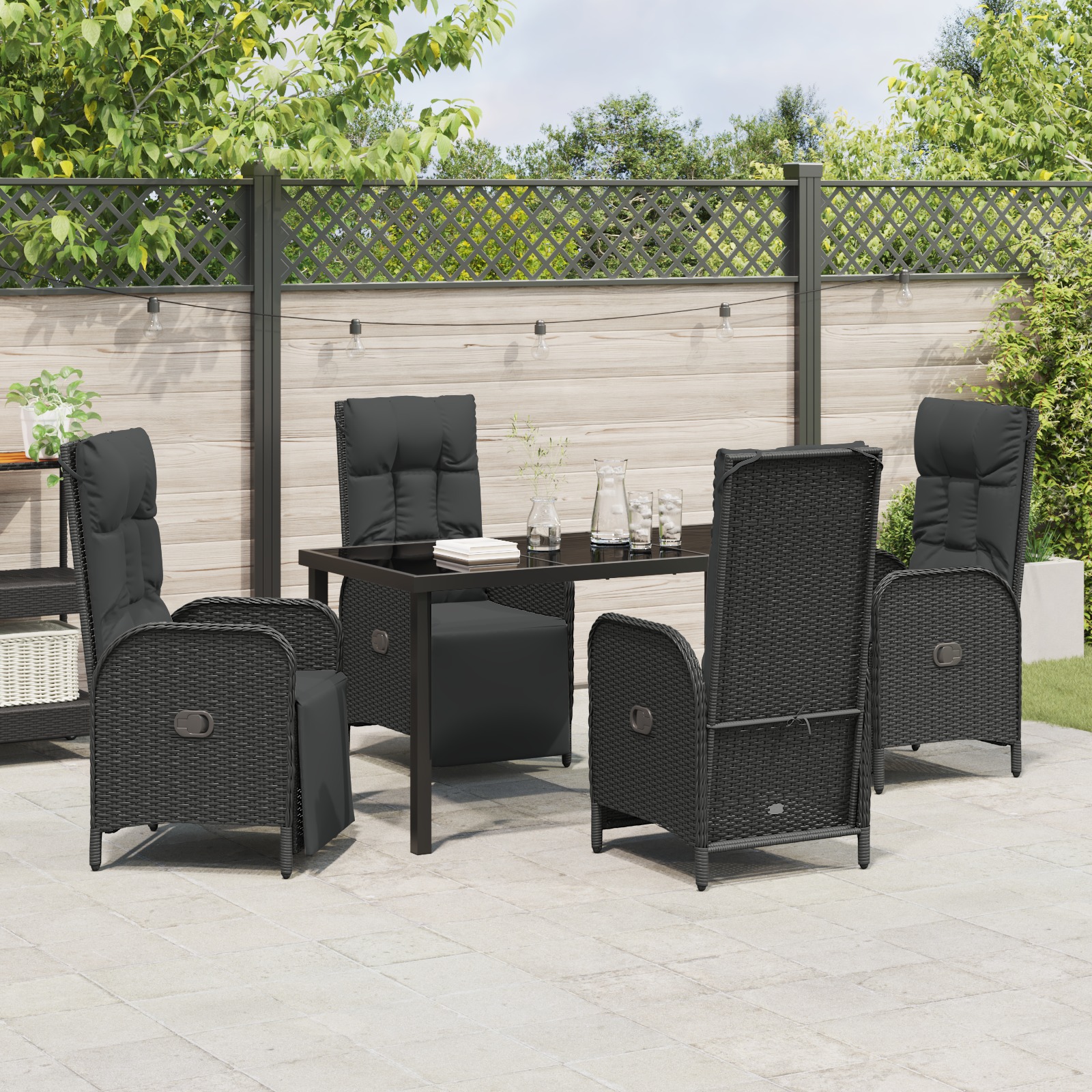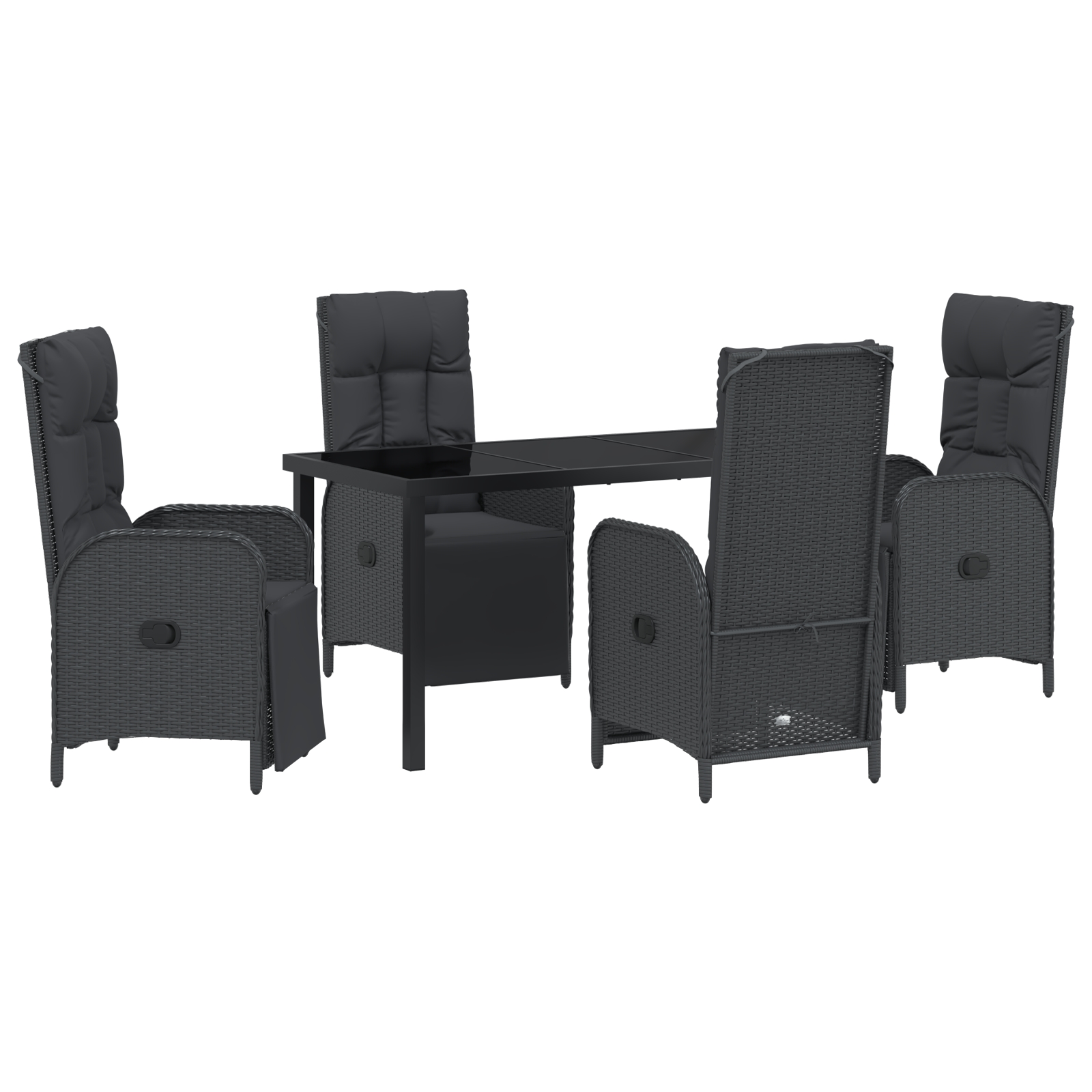 Set de masă pentru grădină cu pernă 5 pcs Negru Rattan poli