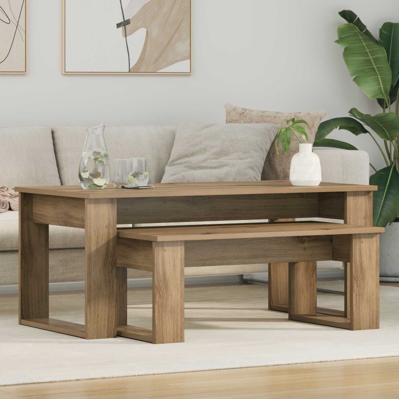 Set de măsuțe de cafea 2 pcs Stejar Artizanal Lemn compozit