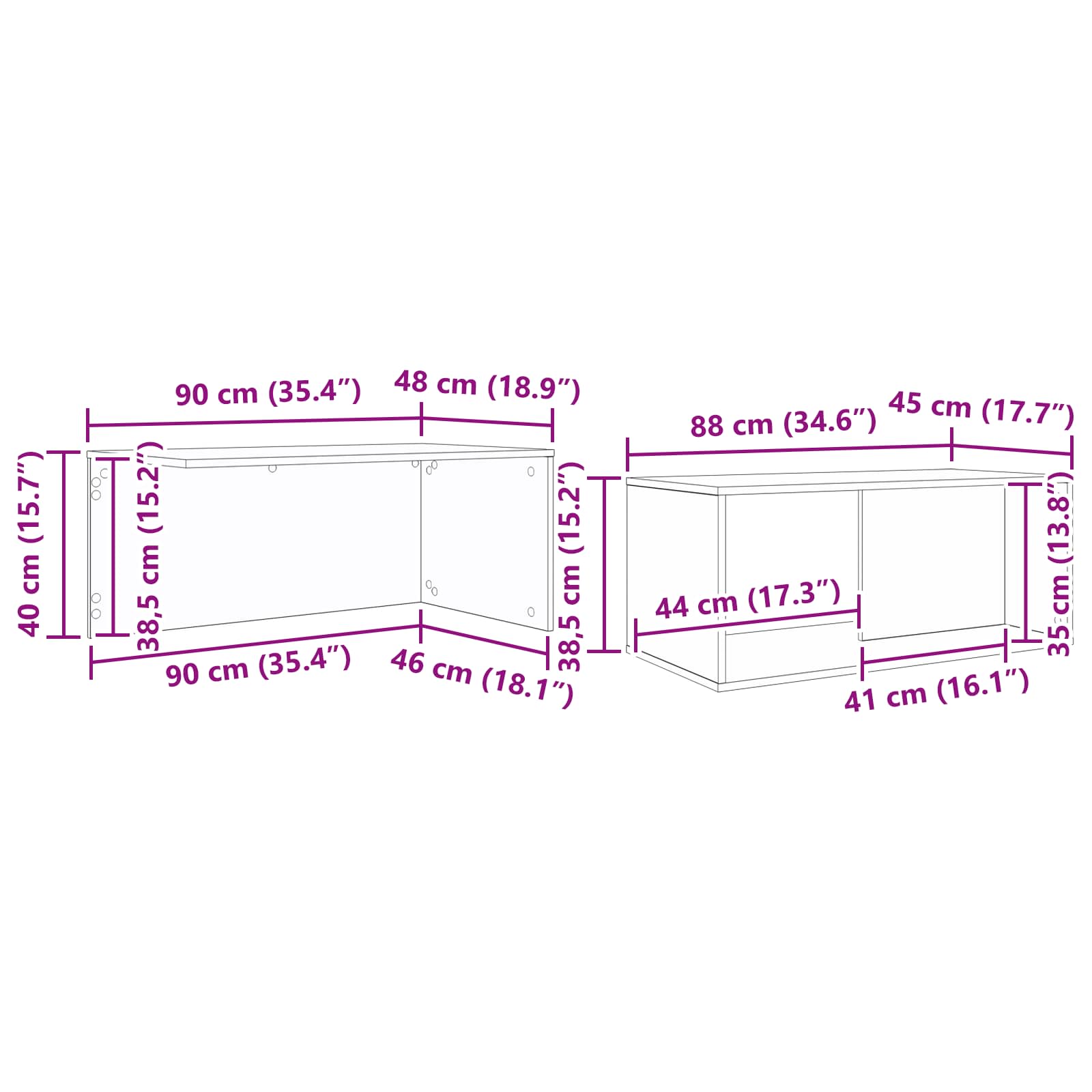 - 1 x Masă de cafea: 88 x 45 x 38,5 cm (LxWxH)
