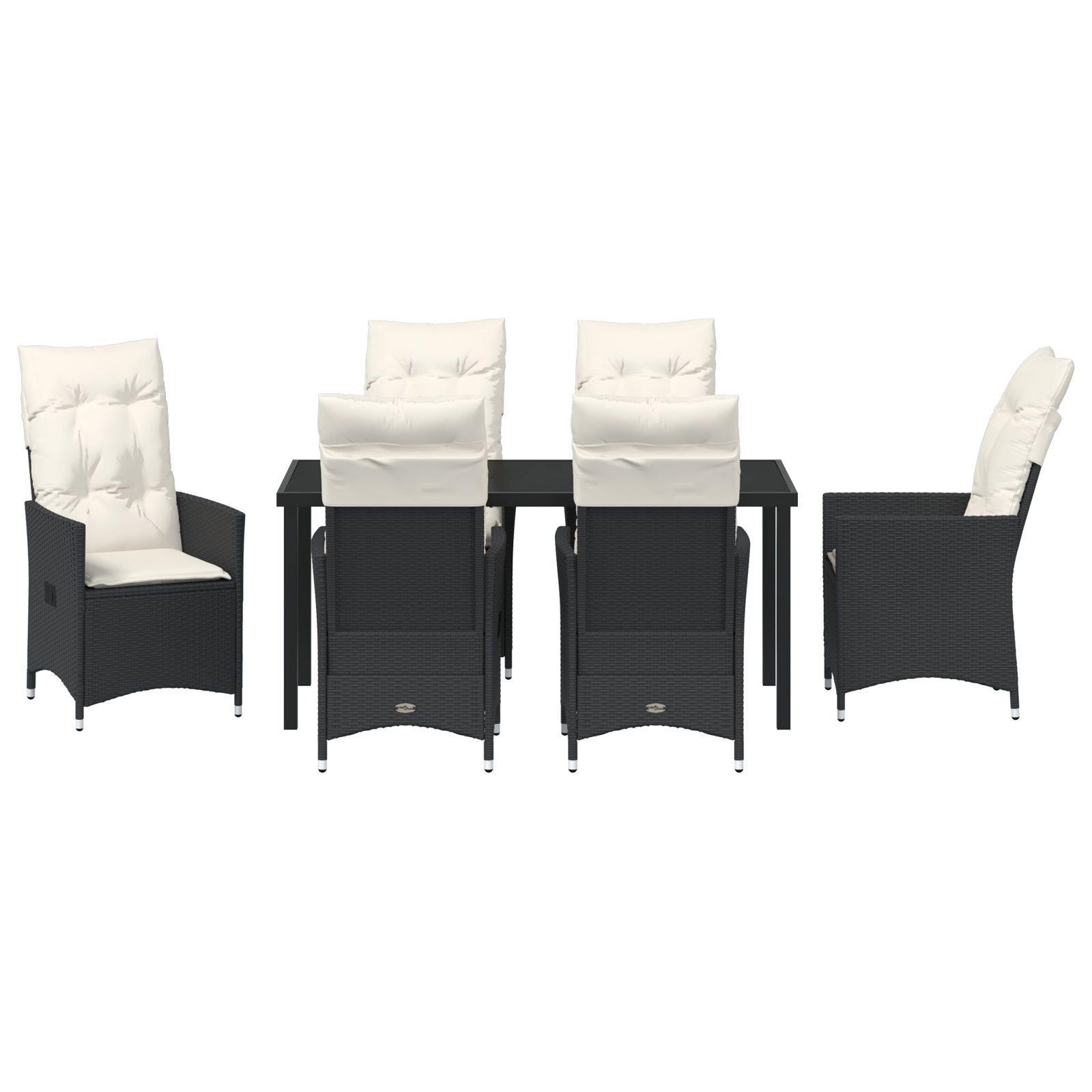 Set de masă pentru grădină cu pernă 7 pcs Negru Rattan poli