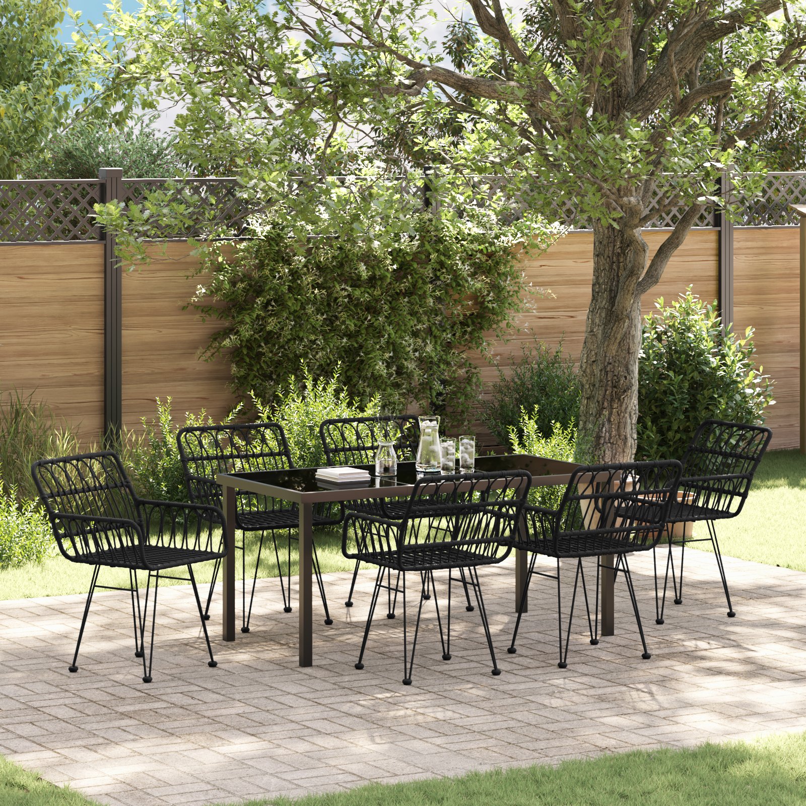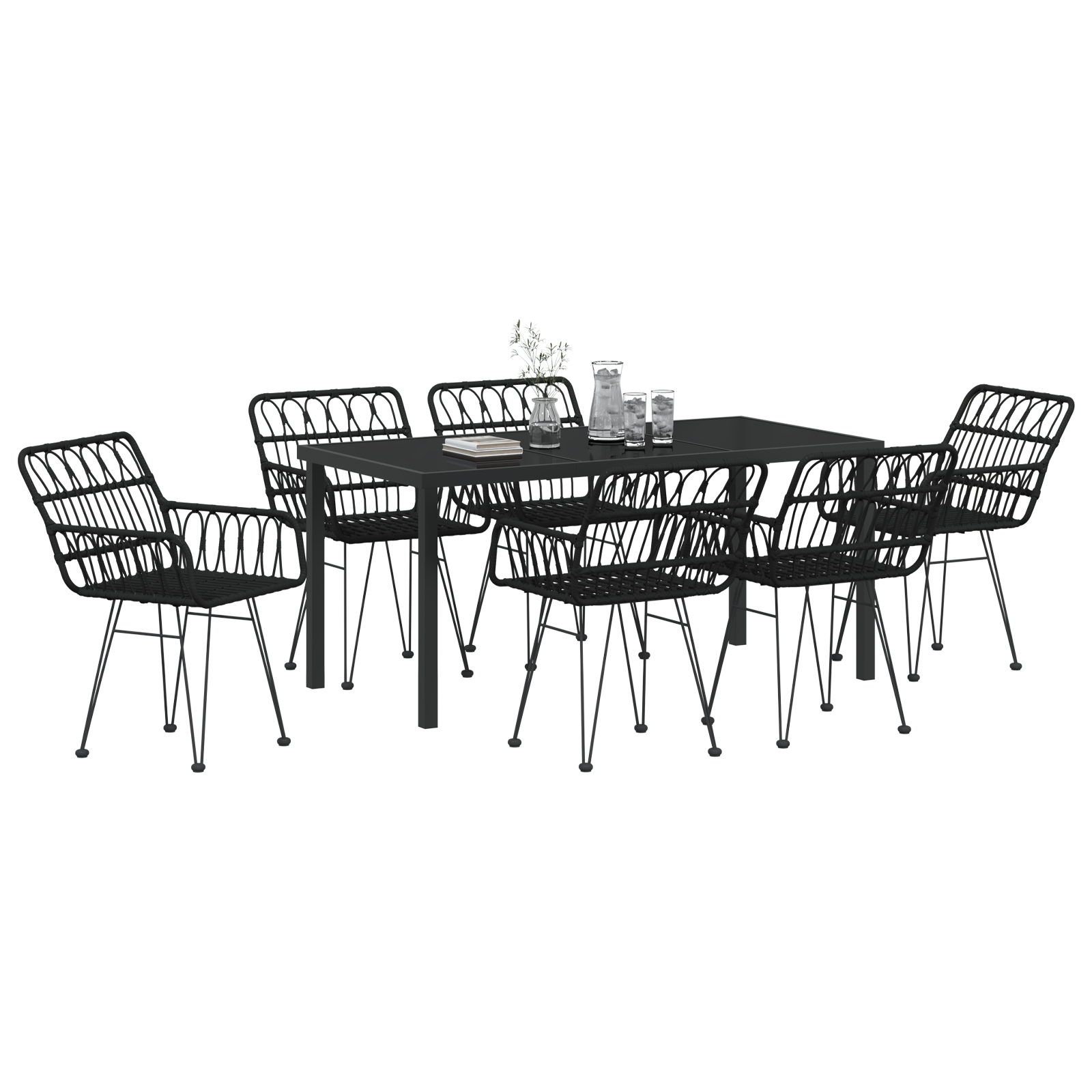 Set de masă pentru grădină 7 pcs Negru Rattan poli