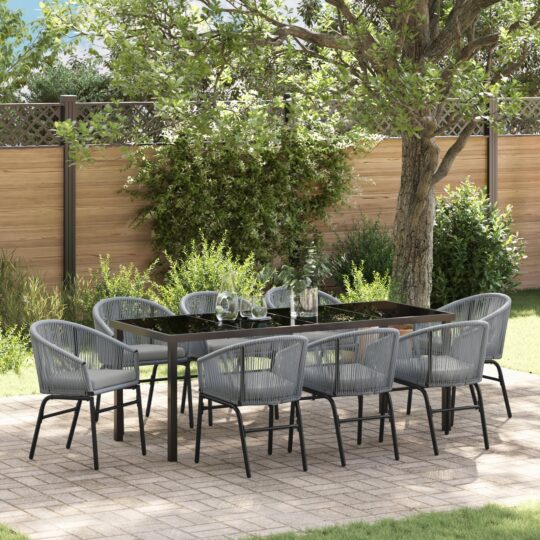 Fii primul care scrii o recenzie pentru „Set de mese de grădină 9 piese gri poli rășină”