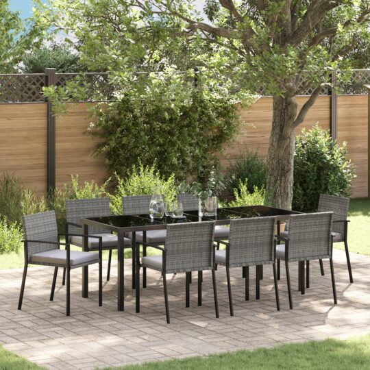 Fii primul care scrii o recenzie pentru „Set de mese de grădină 9 piese gri rattan polimeric”