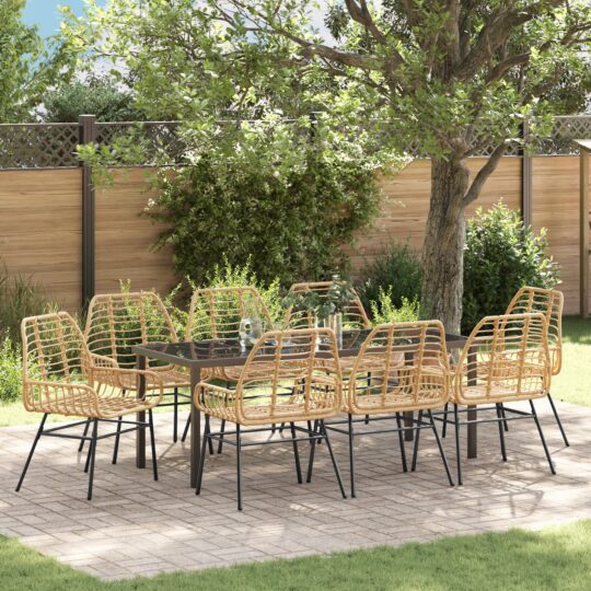 Set de mese de grădină 9 Piese Maro Ratan Poly