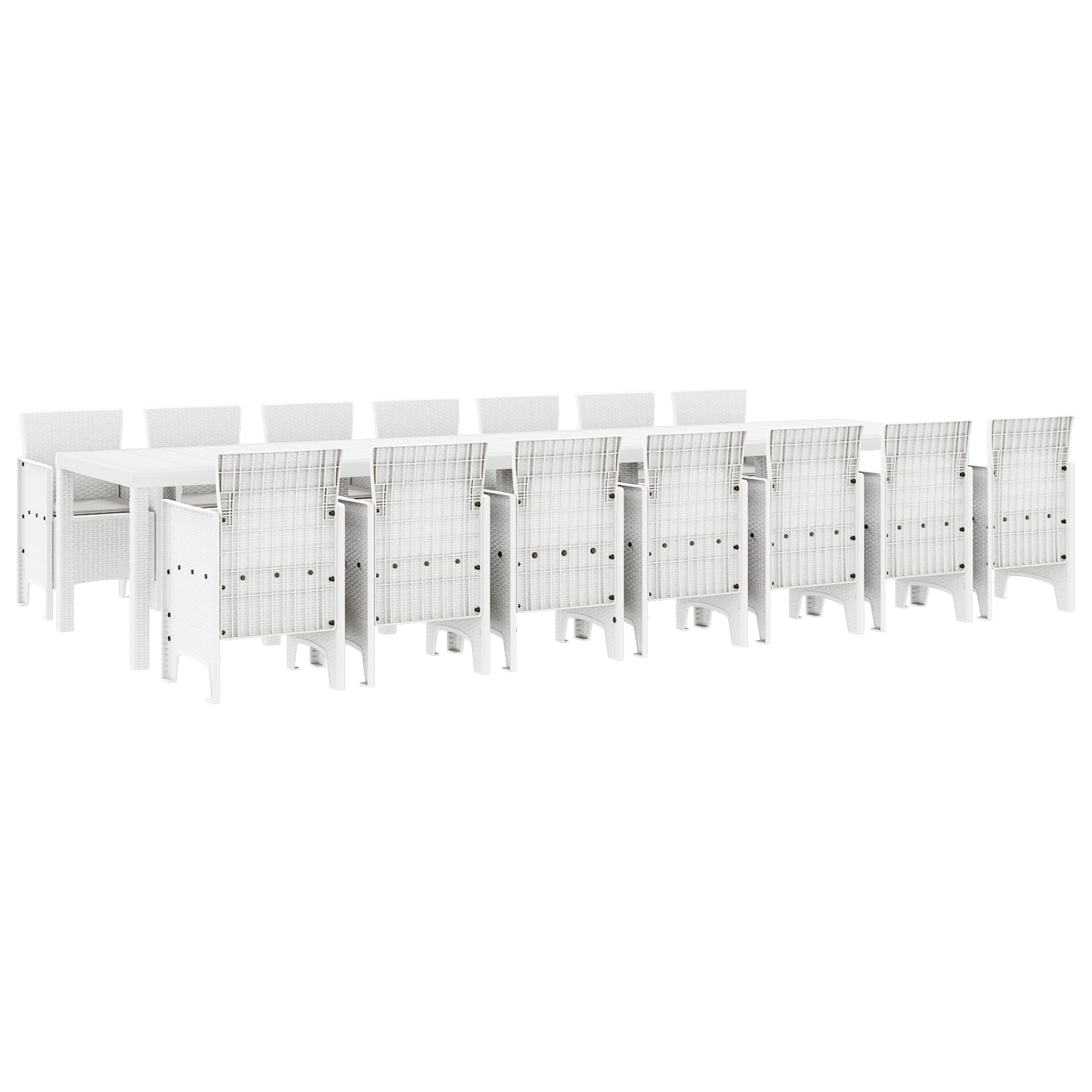 Set de masă pentru grădină 15 pcs Alb Ratan Polt