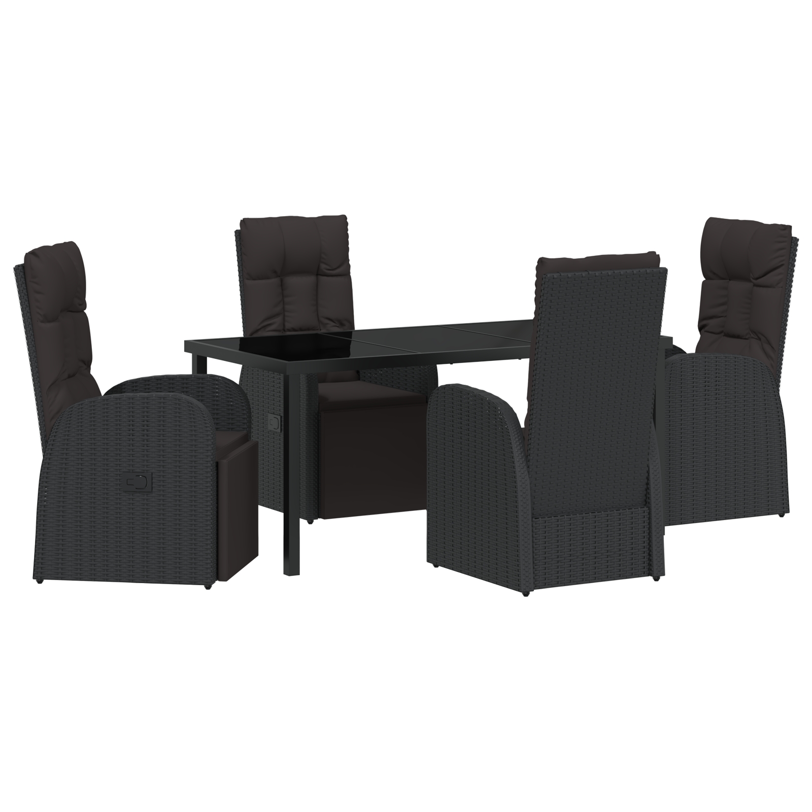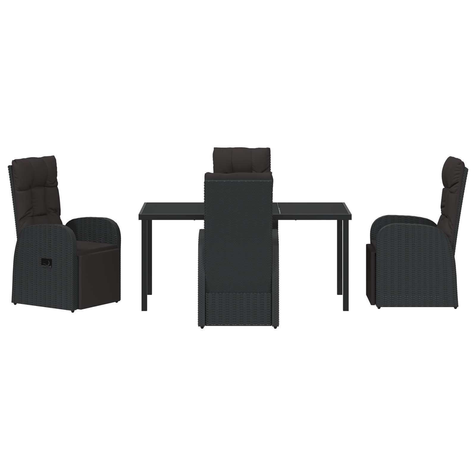 - Componente incluse Fiecare scaun are un spătar ergonomic din poliratan care se adaptează la forma ta, plus cotieră suportivă. Blatul din sticlă securizată e util și elegant, perfect pentru a susține băuturi. Pernele rezistente la vreme completează aspectul, asigurând confort afară.
