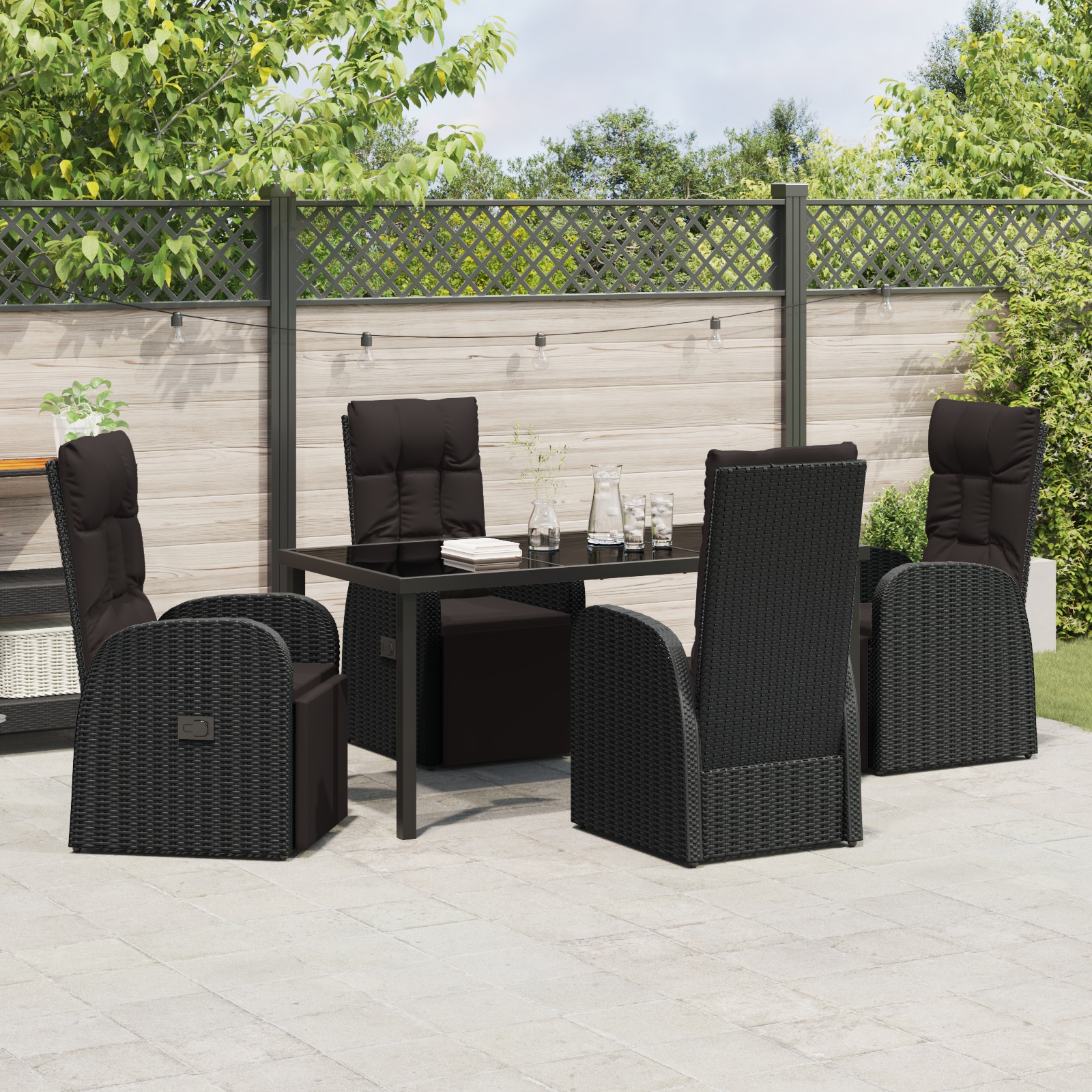 Set de masă pentru grădină cu pernă 5 pcs Negru poliratan