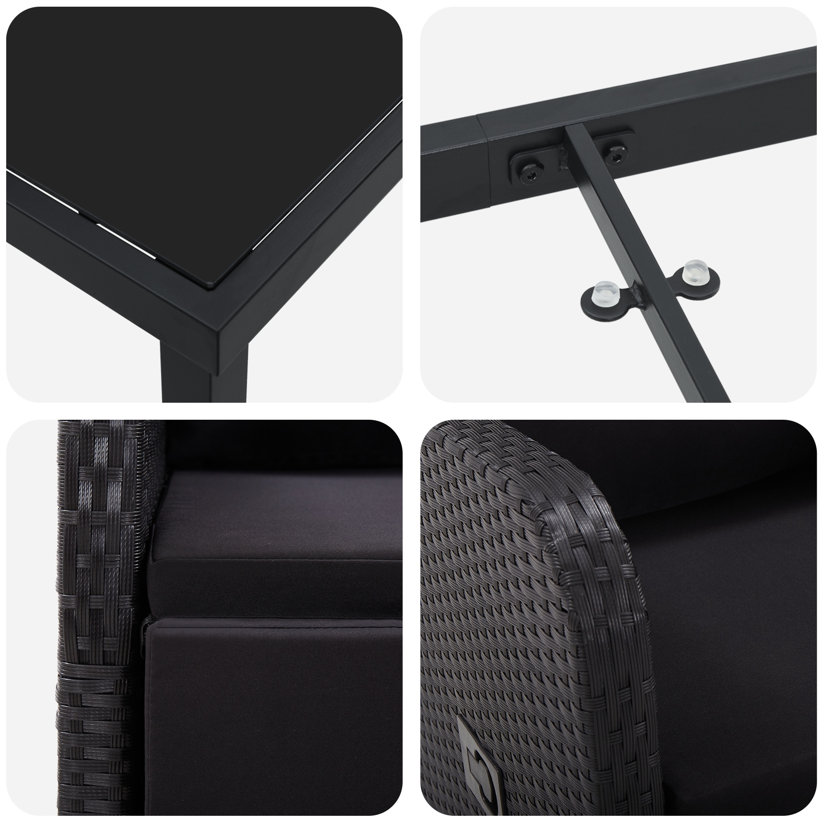 - Funcții / Design Setul de canapele vine cu un mecanism de înclinare, ceea ce-l face ușor de ajustat pentru confortul tău. Designul simplu permite asamblare rapidă cu mânerul furnizat. Funcționalitatea de înclinare îl face o adiție practică pentru grădina sau terasa ta.
