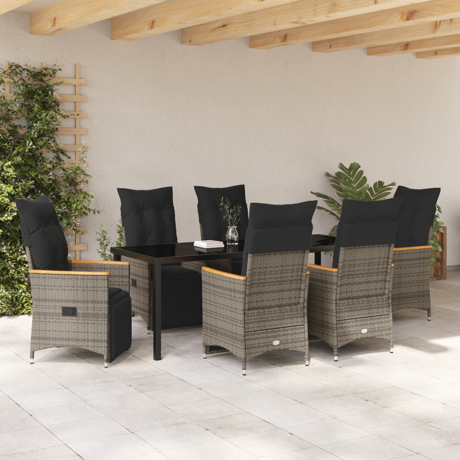 Set de mese de grădină cu 7 piese cu perne gri din poliratan