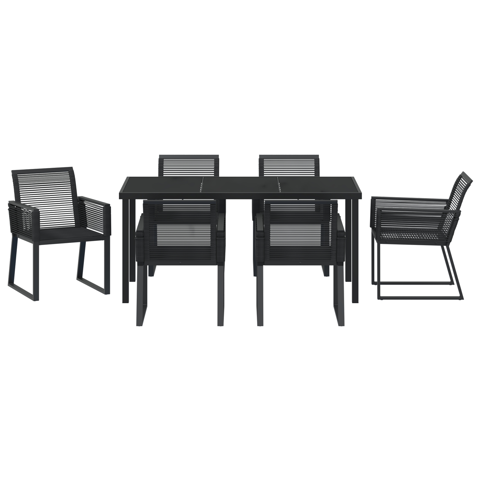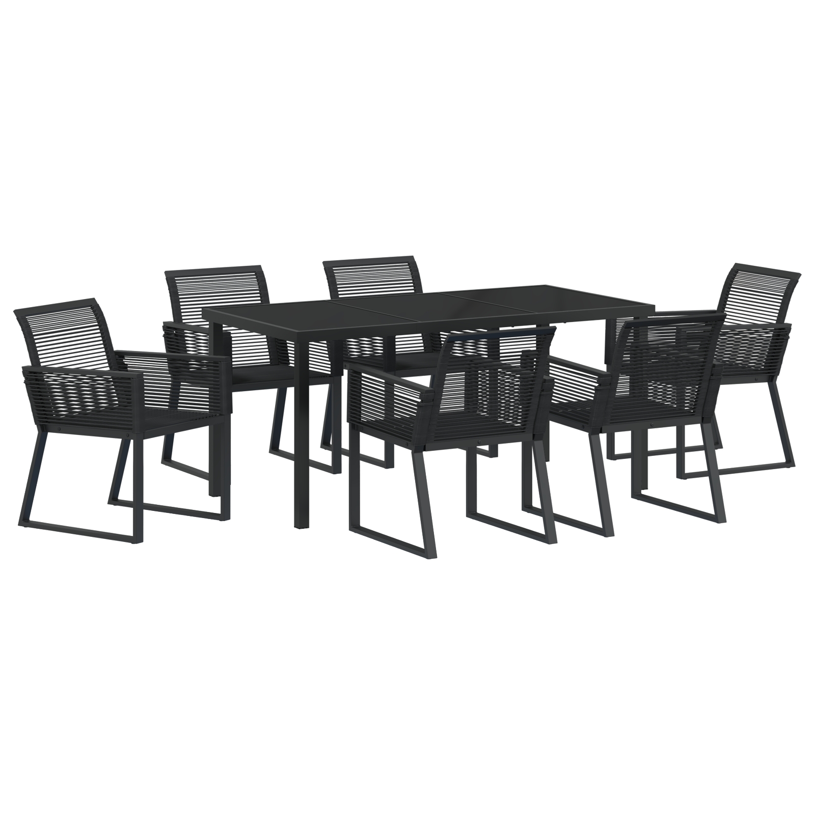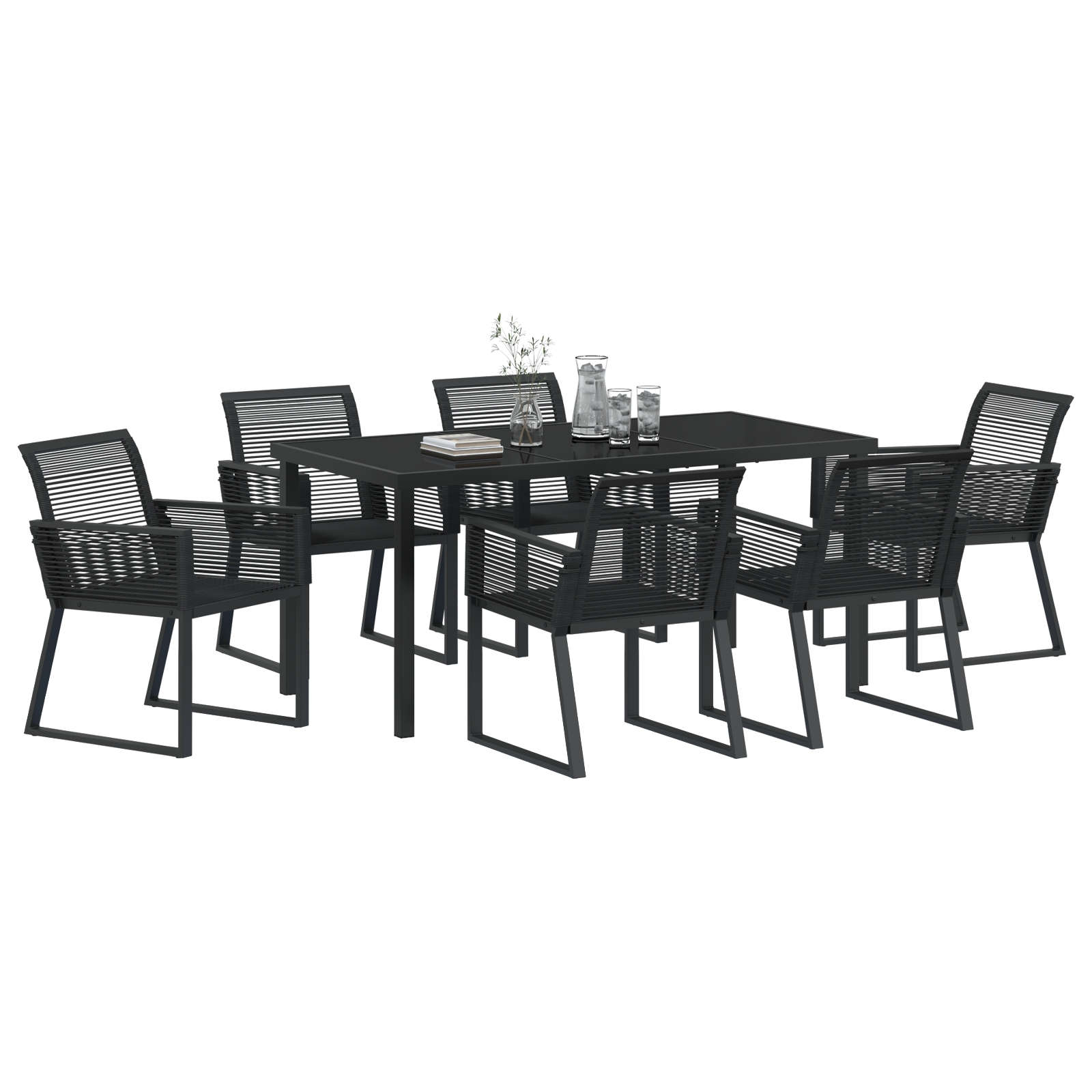 Acest set de masă pentru grădină modern este vârful eleganței exterioare, potrivindu-se perfect în grădini și terase contemporane. Designul elegant și culoarea neagră emană sofisticare și pot îmbunătăți orice spațiu exterior, oferind atât stil, cât și funcționalitate pentru lunile calde de vară când faci dining sau distracții. Are o textură curată, împletită, obținută prin materiale din poliratan, oferind o estetică primitoare pentru adunări. Setul de dining îmbină stilul cu confortul, fiind o adiție perfectă pentru cei care doresc să se bucure de mese în aer liber cu eleganță și ușurință.