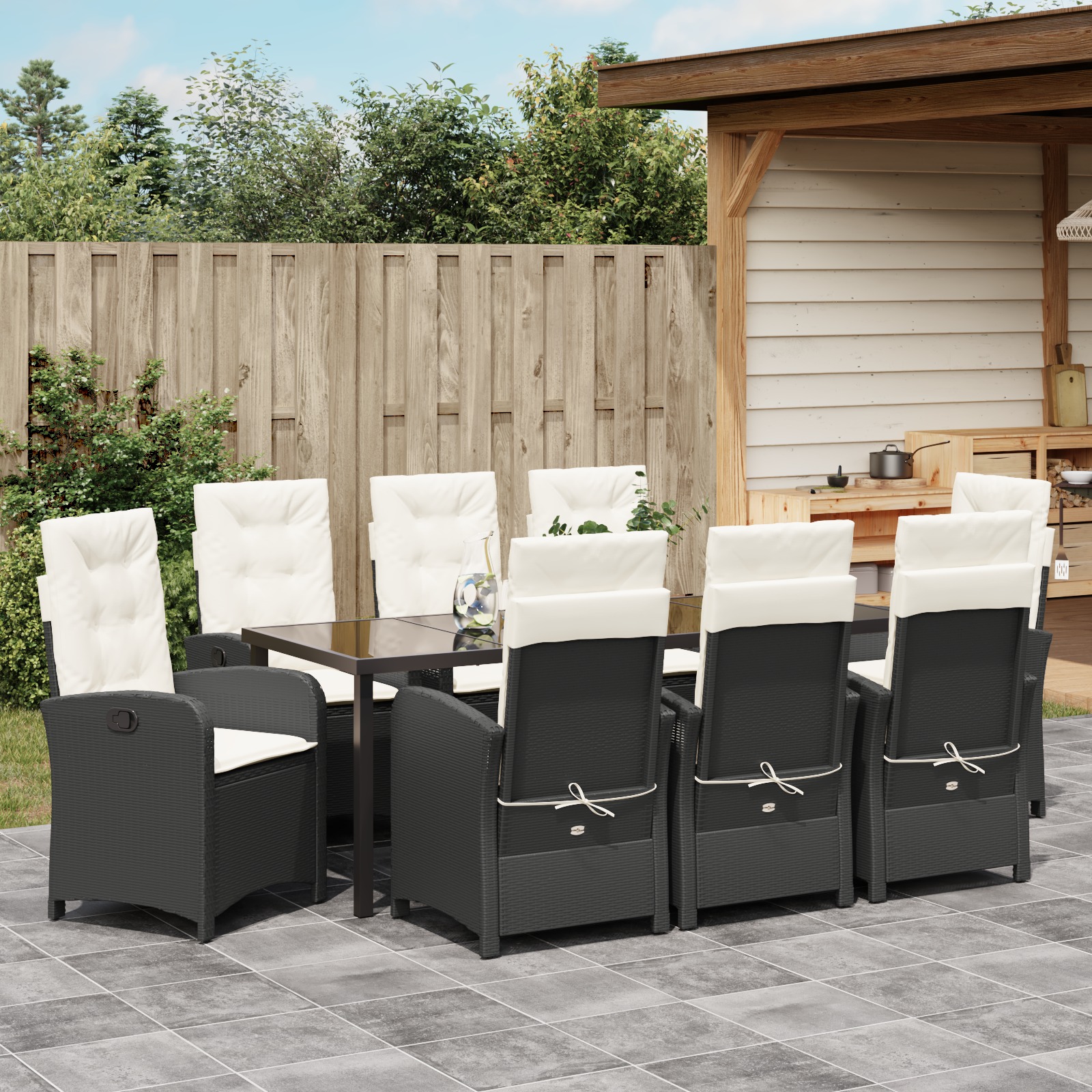 Set de mese de grădină cu 9 piese cu perne din rattan polimeric negru