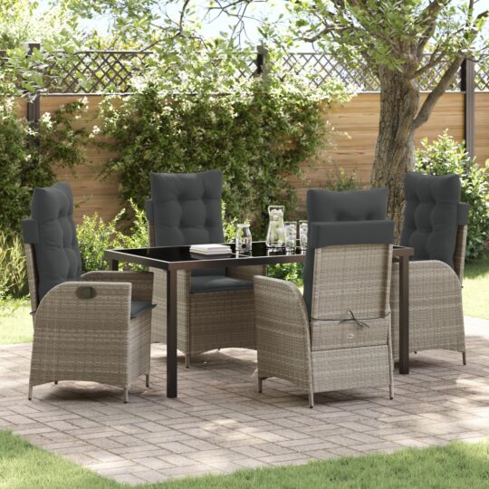 Set de masă pentru grădină 5 pcs Gri deschis poliratan