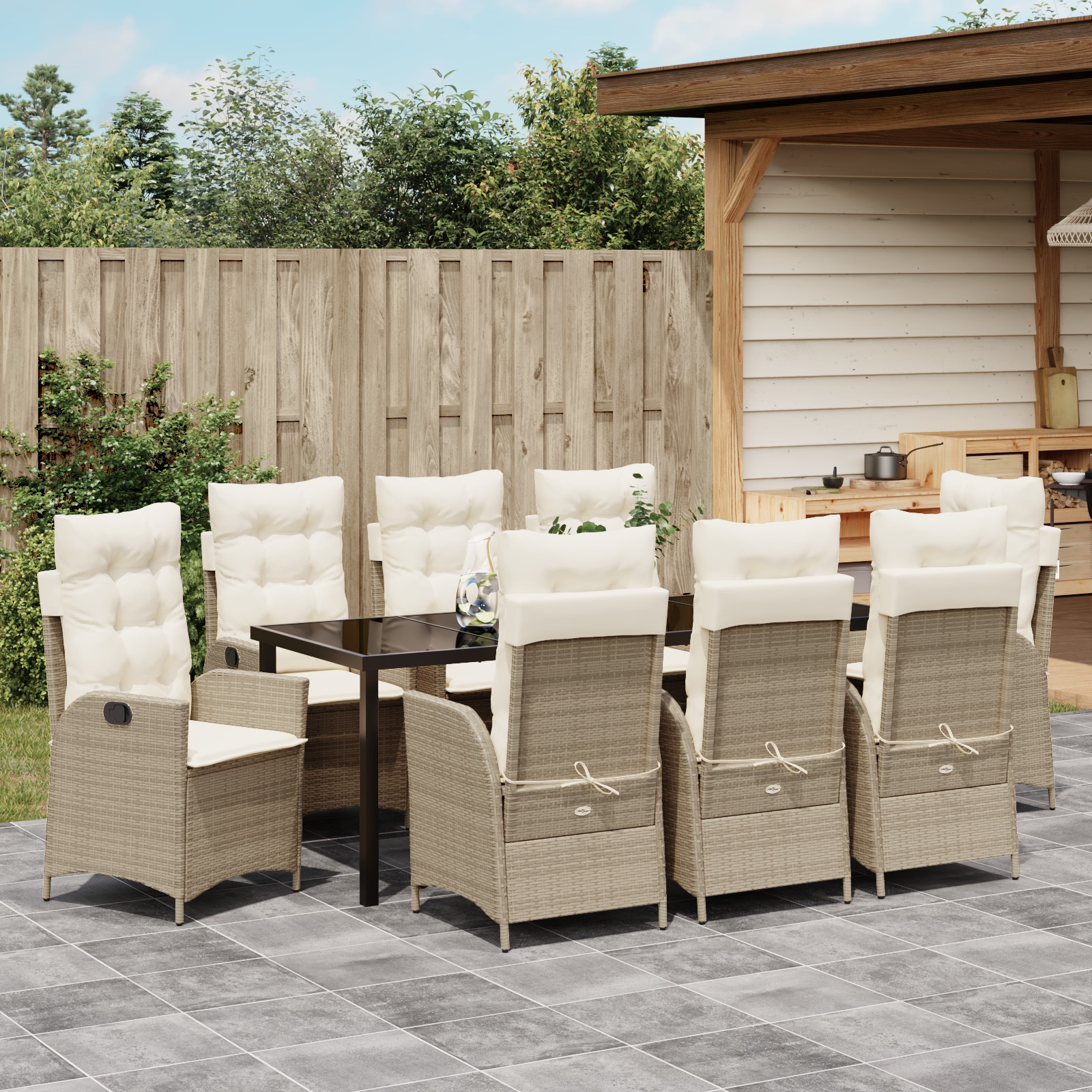 Set de Mese de Grădină din 9 Piese cu Perne – Poliratan Bej